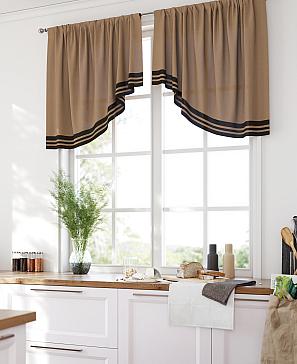 Комплект штор из легкой портьерной ткани (габардин) оформлен печатным рисунком. Печатный рисунок дает широкие возможности обновить интерьер фактически нет требуя ремонта за счет огромного выбора. Ткани с печатным рисунком безопасны и не содержат токсичных веществ. Не смотря на то что, материал легкий, он имеет высокую плотность, мало загрязнятся и не требует особого ухода даже после стирки, что важно для кухонных занавесок. Шторы не выцветают, не растягиваются, превосходно драпируются, образуя струящиеся складки. Прекрасное решение для создания красоты и уюта с помощью уникальных дизайнов.