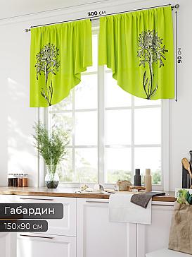 Комплект штор из легкой портьерной ткани (габардин) оформлен печатным рисунком. Печатный рисунок дает широкие возможности обновить интерьер фактически нет требуя ремонта за счет огромного выбора. Ткани с печатным рисунком безопасны и не содержат токсичных веществ. Не смотря на то что, материал легкий, он имеет высокую плотность, мало загрязнятся и не требует особого ухода даже после стирки, что важно для кухонных занавесок. Шторы не выцветают, не растягиваются, превосходно драпируются, образуя струящиеся складки. Прекрасное решение для создания красоты и уюта с помощью уникальных дизайнов.