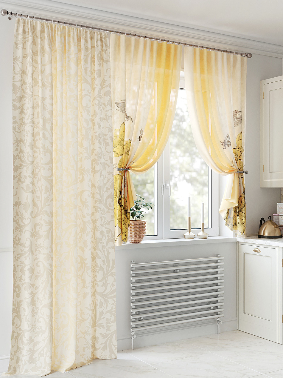 Портьера 1 шт. Подхват - доп.услуга. Комплект для интерьера с балконной дверью, состоит из легкой портьеры для двери и тюли для окна. Оригинальная ассиметричная конструкция оживит любое помещение. Красивая одиночная портьера украсит балконный проём и обеспечит удобный доступ к двери. Легкая вуаль с пышными складками создаст воздушный образ окна и защитит от прямых солнечных лучей, мягко рассеивая свет.