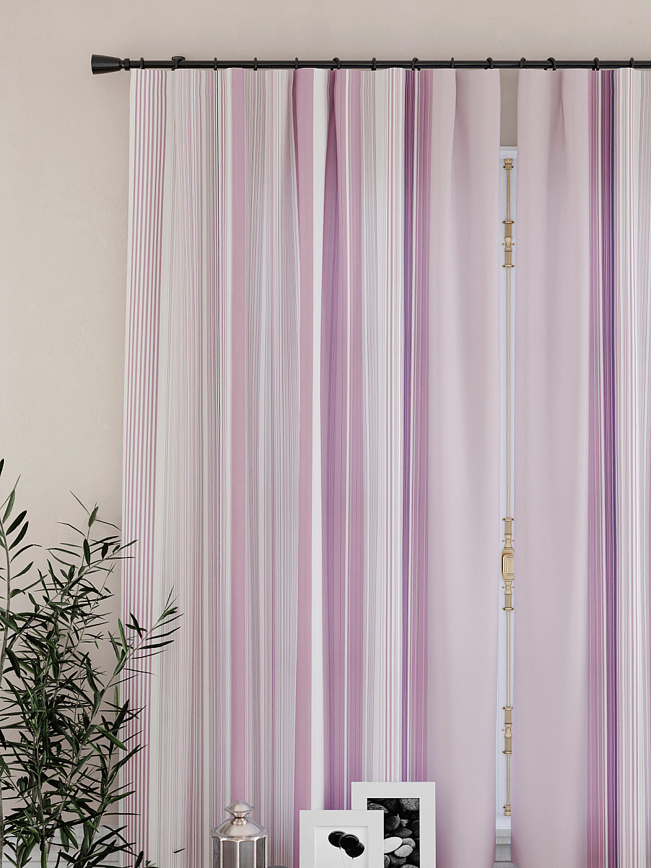 По верхнему краю портьер пришита шторная тесьма 6 см, с ее помощью затянув узелки от кордовых нитей с обеих сторон и стянув их до нужного размера можно сформировать округлые складки, далее вставить крючки в кармашки и повесить на карниз. Обязательно проверьте кордовые нити – они должны быть надежно завязаны, в противном случае во время стягивания они могут вылететь. Шторная тесьма имеет два ряда кармашков, с их помощью можно регулировать не только длину, но и ширину. Такое крепление подходит для всех типов карнизов.
