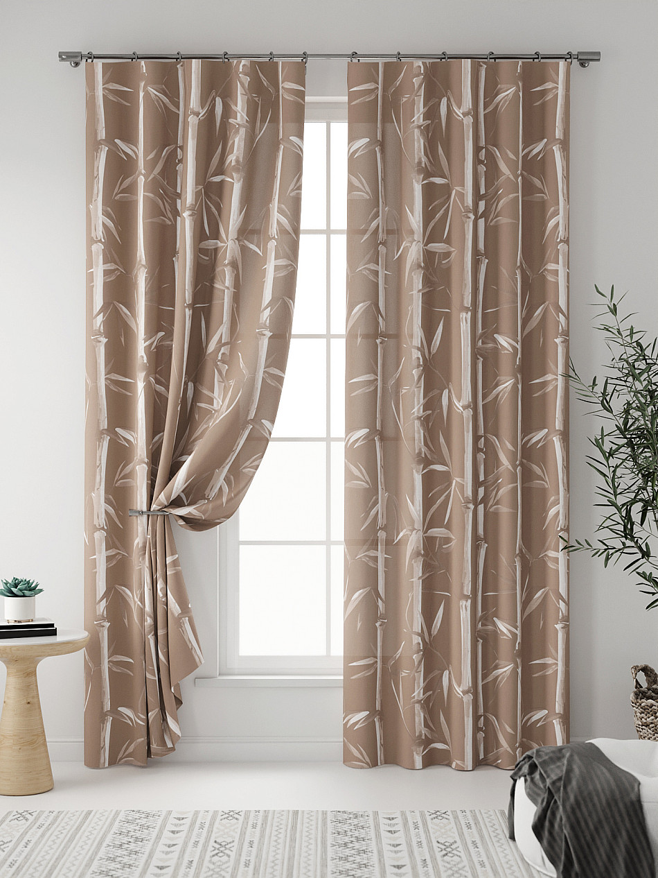 Комплект штор из легкой портьерной ткани (габардин) оформлен печатным рисунком. Печатный рисунок дает широкие возможности обновить интерьер фактически нет требуя ремонта за счет огромного выбора. Ткани с печатным рисунком безопасны и не содержат токсичных веществ. Не смотря на то что, материал легкий, он имеет высокую плотность, мало загрязнятся и не требует особого ухода даже после стирки, что важно для кухонных занавесок. Шторы не выцветают, не растягиваются, превосходно драпируются, образуя струящиеся складки. Прекрасное решение для создания красоты и уюта с помощью уникальных дизайнов.