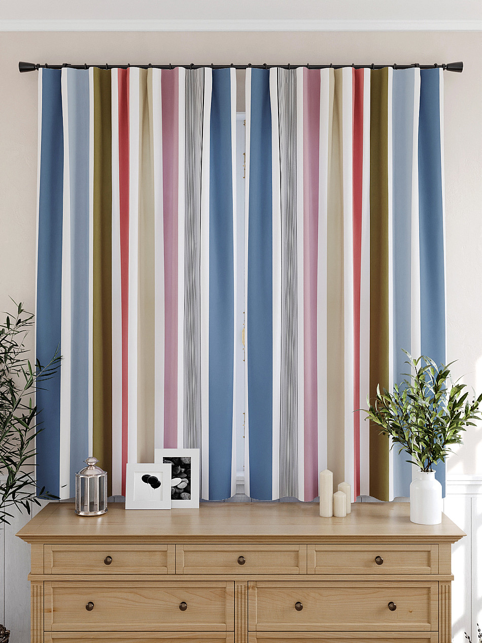 Портьеры 2 шт: Комплект штор из легкой портьерной ткани (габардин) оформлен печатным рисунком. Печатный рисунок дает широкие возможности обновить интерьер фактически нет требуя ремонта за счет огромного выбора. Ткани с печатным рисунком безопасны и не содержат токсичных веществ. Не смотря на то что, материал легкий, он имеет высокую плотность, мало загрязнятся и не требует особого ухода даже после стирки, что важно для кухонных занавесок. Шторы не выцветают, не растягиваются, превосходно драпируются, образуя струящиеся складки. Прекрасное решение для создания красоты и уюта с помощью уникальных дизайнов.