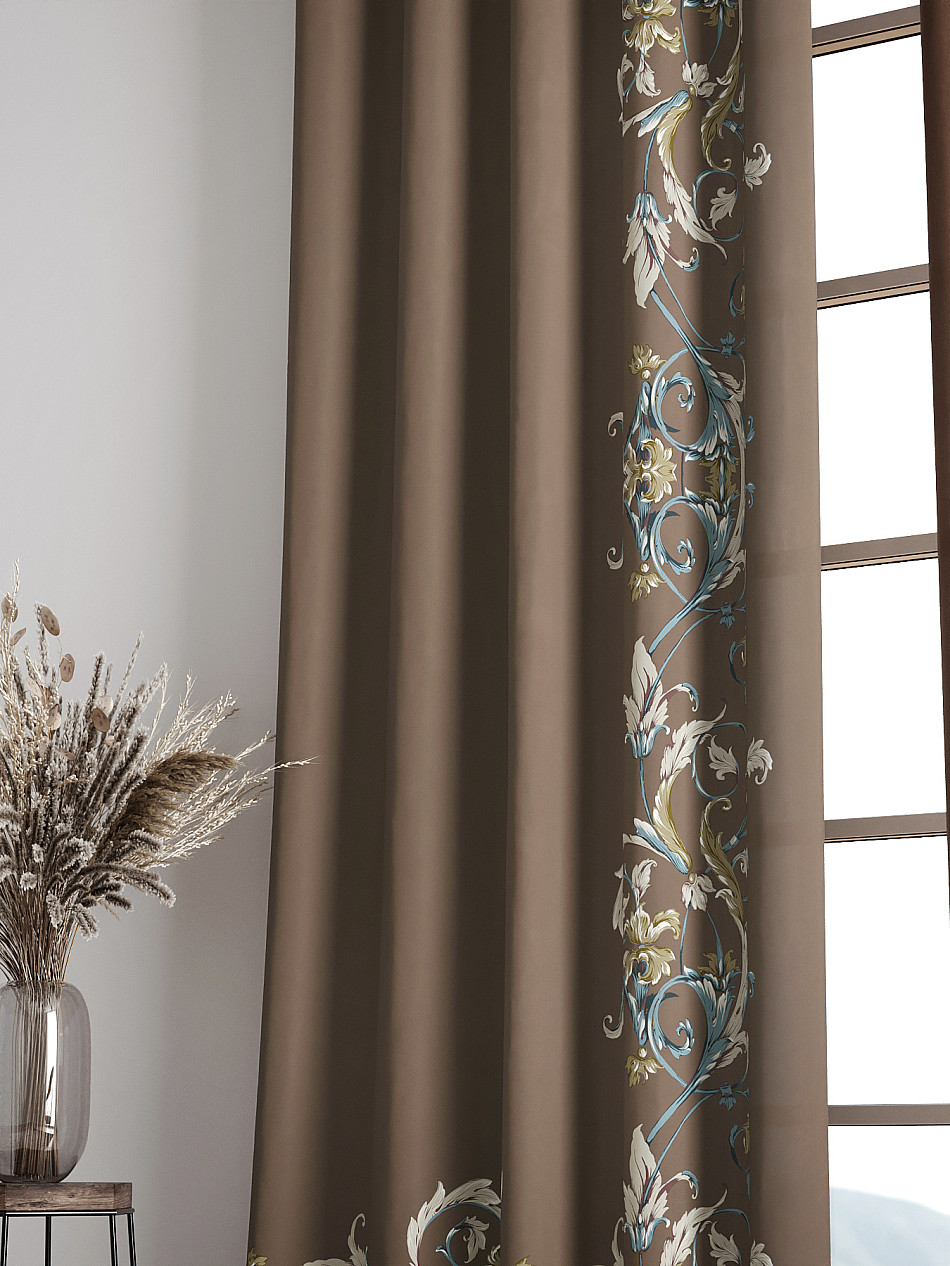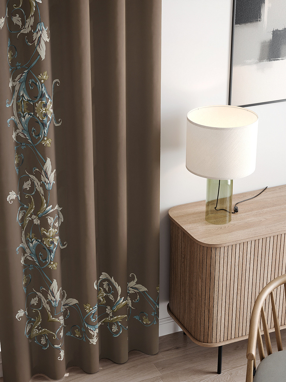 - Шторы бирюзовые с коричневым