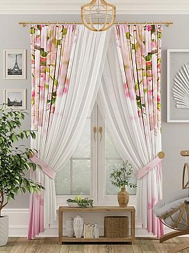 Портьера 2 шт. и 2 подхвата. Легкая основа портьер дополнена белой вуалью, полотна сшиты между собой по шторной ленте. Размеры: