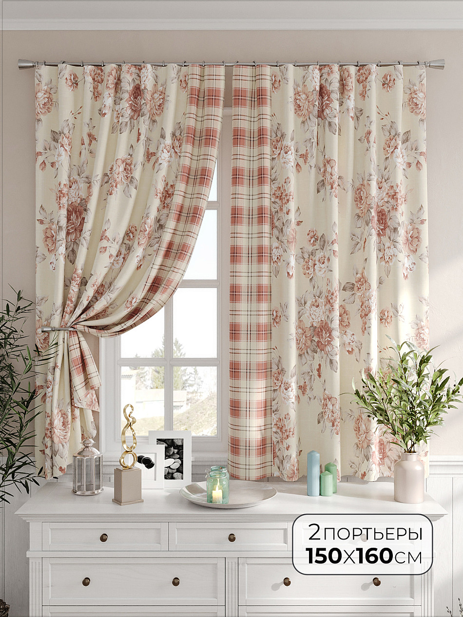Портьеры 150х160 см — 2 шт. ( Изменить высоту) Крепление: шторная лента (крючки), кулиска Подробнее