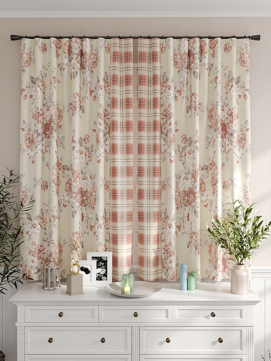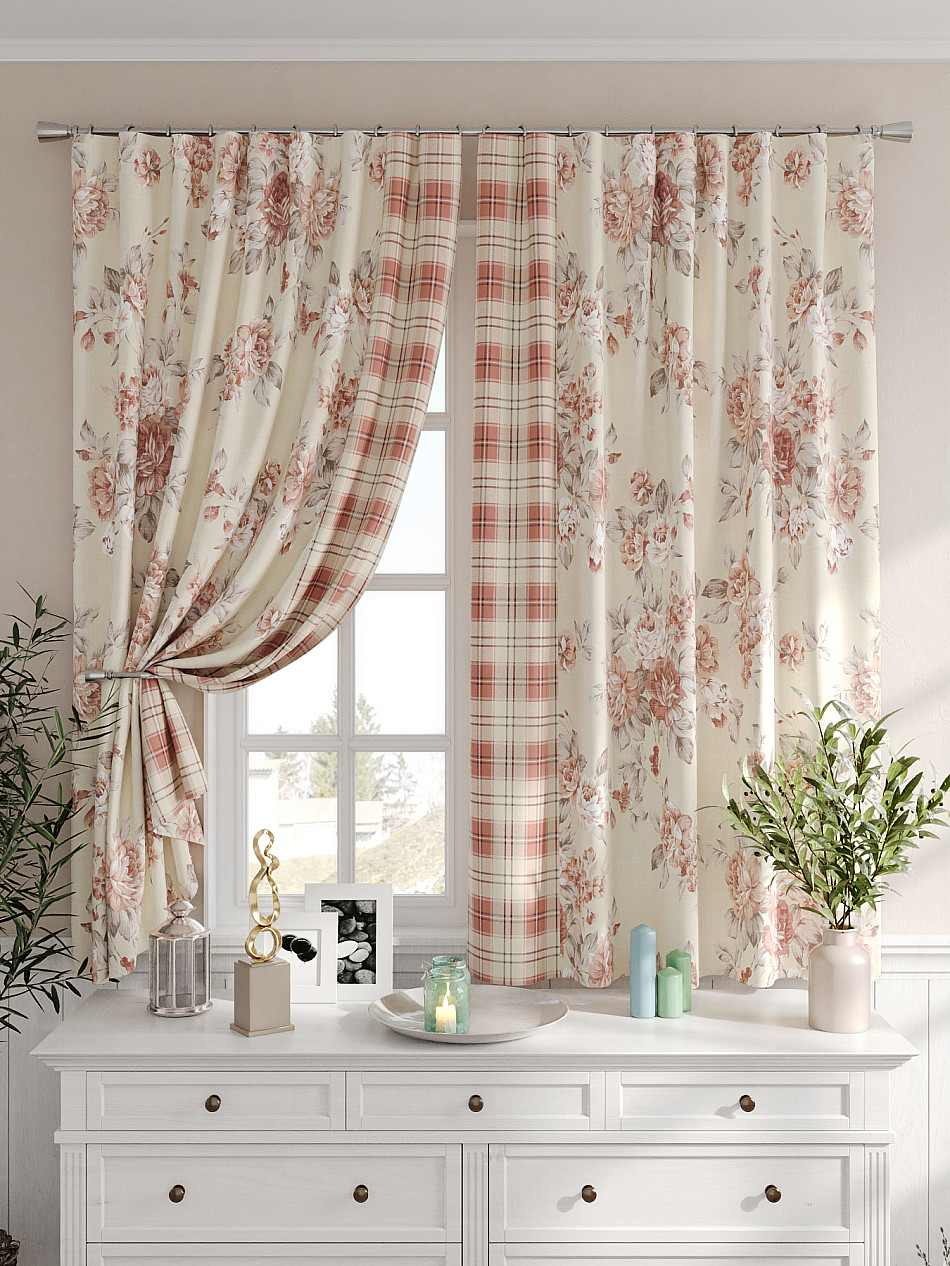 Портьеры 2 шт. Комплект штор из легкой портьерной ткани (габардин) оформлен печатным рисунком. Печатный рисунок дает широкие возможности обновить интерьер фактически не требуя ремонта за счет огромного выбора. Ткани с печатным рисунком безопасны и не содержат токсичных веществ. Не смотря на то, что материал легкий, он имеет высокую плотность, мало загрязнятся и не требует особого ухода даже после стирки, что важно для кухонных занавесок. Шторы не выцветают, не растягиваются, превосходно драпируются, образуя струящиеся складки. Прекрасное решение для создания красоты и уюта с помощью уникальных дизайнов.