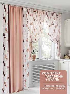 Портьера 150х250 см — 1 шт., вуаль 150х180 см — 2 шт. ( Уменьшить высоту ) Крепление: шторная лента (крючки), кулиска Подробнее