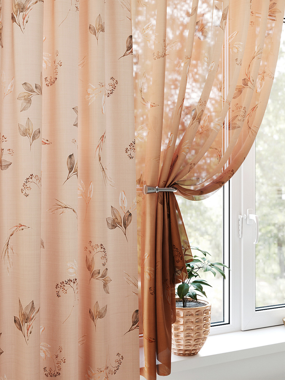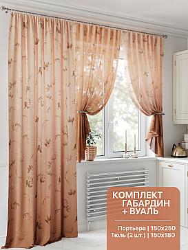 Портьера 150х250 см — 1 шт., вуаль 150х180 см — 2 шт. ( Уменьшить высоту ) Крепление: шторная лента (крючки), кулиска Подробнее