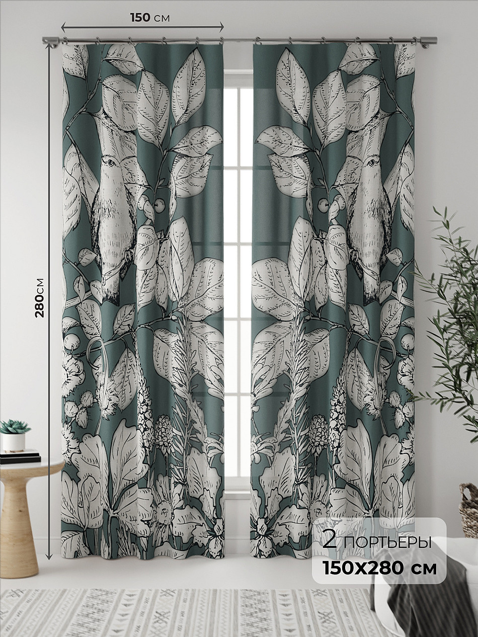 Портьера 150х280 см. — 2 шт. ( Уменьшить высоту ) Крепление: шторная лента (крючки), кулиска Подробнее