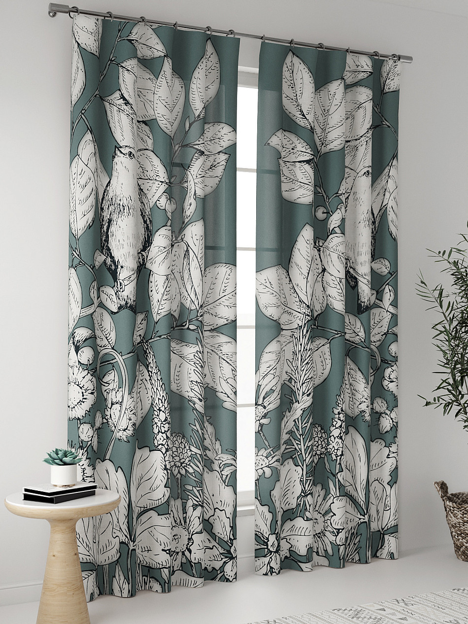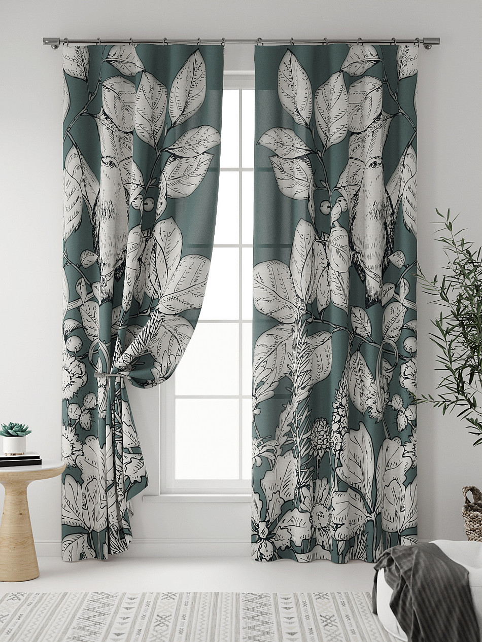 Комплект штор из легкой портьерной ткани (габардин) оформлен печатным рисунком. Печатный рисунок дает широкие возможности обновить интерьер фактически нет требуя ремонта за счет огромного выбора. Ткани с печатным рисунком безопасны и не содержат токсичных веществ. Не смотря на то что, материал легкий, он имеет высокую плотность, мало загрязнятся и не требует особого ухода даже после стирки, что важно для кухонных занавесок. Шторы не выцветают, не растягиваются, превосходно драпируются, образуя струящиеся складки. Прекрасное решение для создания красоты и уюта с помощью уникальных дизайнов.