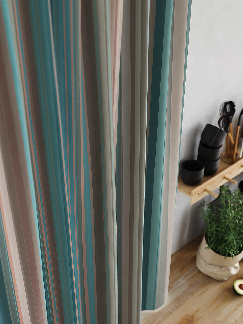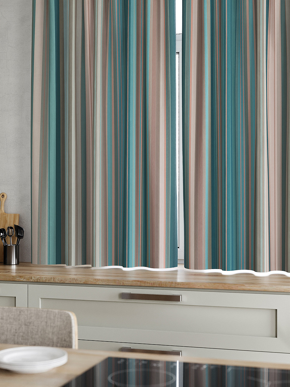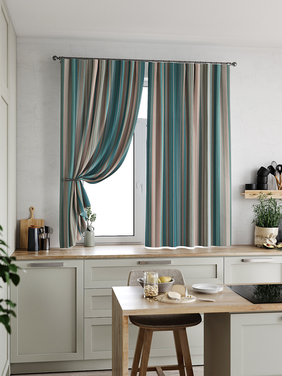 Комплект штор из легкой портьерной ткани (габардин) оформлен печатным рисунком. Печатный рисунок дает широкие возможности обновить интерьер фактически нет требуя ремонта за счет огромного выбора. Ткани с печатным рисунком безопасны и не содержат токсичных веществ. Не смотря на то что, материал легкий, он имеет высокую плотность, мало загрязнятся и не требует особого ухода даже после стирки, что важно для кухонных занавесок. Шторы не выцветают, не растягиваются, превосходно драпируются, образуя струящиеся складки. Прекрасное решение для создания красоты и уюта с помощью уникальных дизайнов.