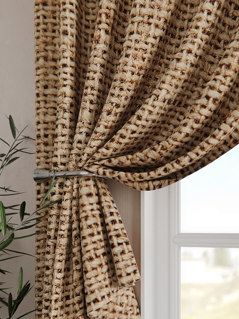 По верхнему краю портьер пришита шторная тесьма 6 см, с ее помощью затянув узелки от кордовых нитей с обеих сторон и стянув их до нужного размера можно сформировать округлые складки, далее вставить крючки в кармашки и повесить на карниз. Обязательно проверьте кордовые нити – они должны быть надежно завязаны, в противном случае во время стягивания они могут вылететь. Шторная тесьма имеет два ряда кармашков, с их помощью можно регулировать не только длину, но и ширину. Такое крепление подходит для всех типов карнизов.