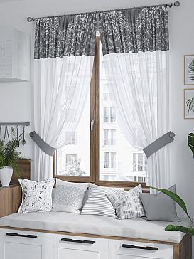 Комплект штор из белой вуали дополнен портьерной тканью (габардин) с печатным рисунком. Шторы не выцветают, не растягиваются, превосходно драпируются образуя струящиеся складки. Прекрасное решение для создания красоты и уюта с помощью уникальных дизайнов.
