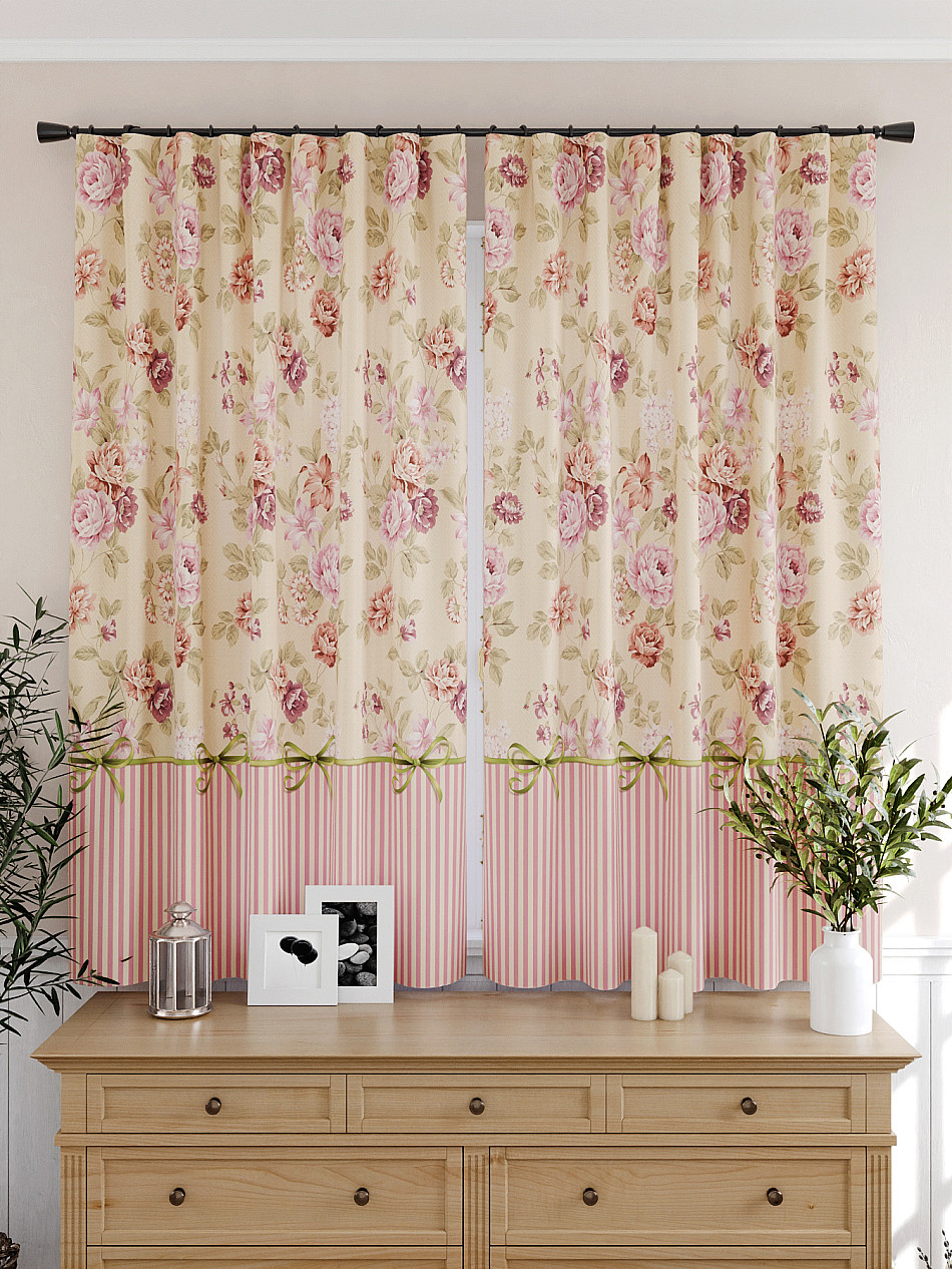 Портьеры 2 шт: Комплект штор из портьерной ткани с отделкой. Фактура ткани прекрасно гармонирует с любым интерьером, а печатный рисунок дает широкие возможности обновить интерьер, фактически не требуя ремонта, за счет огромного выбора. Ткань износостойкая и не требует особого ухода, превосходно драпируется образуя струящиеся складки. Прекрасное решение для создания красоты и уюта с помощью уникальных дизайнов.