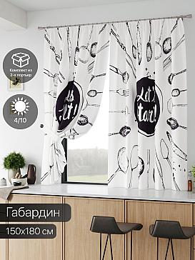 Комплект штор из легкой портьерной ткани (габардин) оформлен печатным рисунком. Печатный рисунок дает широкие возможности обновить интерьер фактически нет требуя ремонта за счет огромного выбора. Ткани с печатным рисунком безопасны и не содержат токсичных веществ. Не смотря на то что, материал легкий, он имеет высокую плотность, мало загрязнятся и не требует особого ухода даже после стирки, что важно для кухонных занавесок. Шторы не выцветают, не растягиваются, превосходно драпируются, образуя струящиеся складки. Прекрасное решение для создания красоты и уюта с помощью уникальных дизайнов.