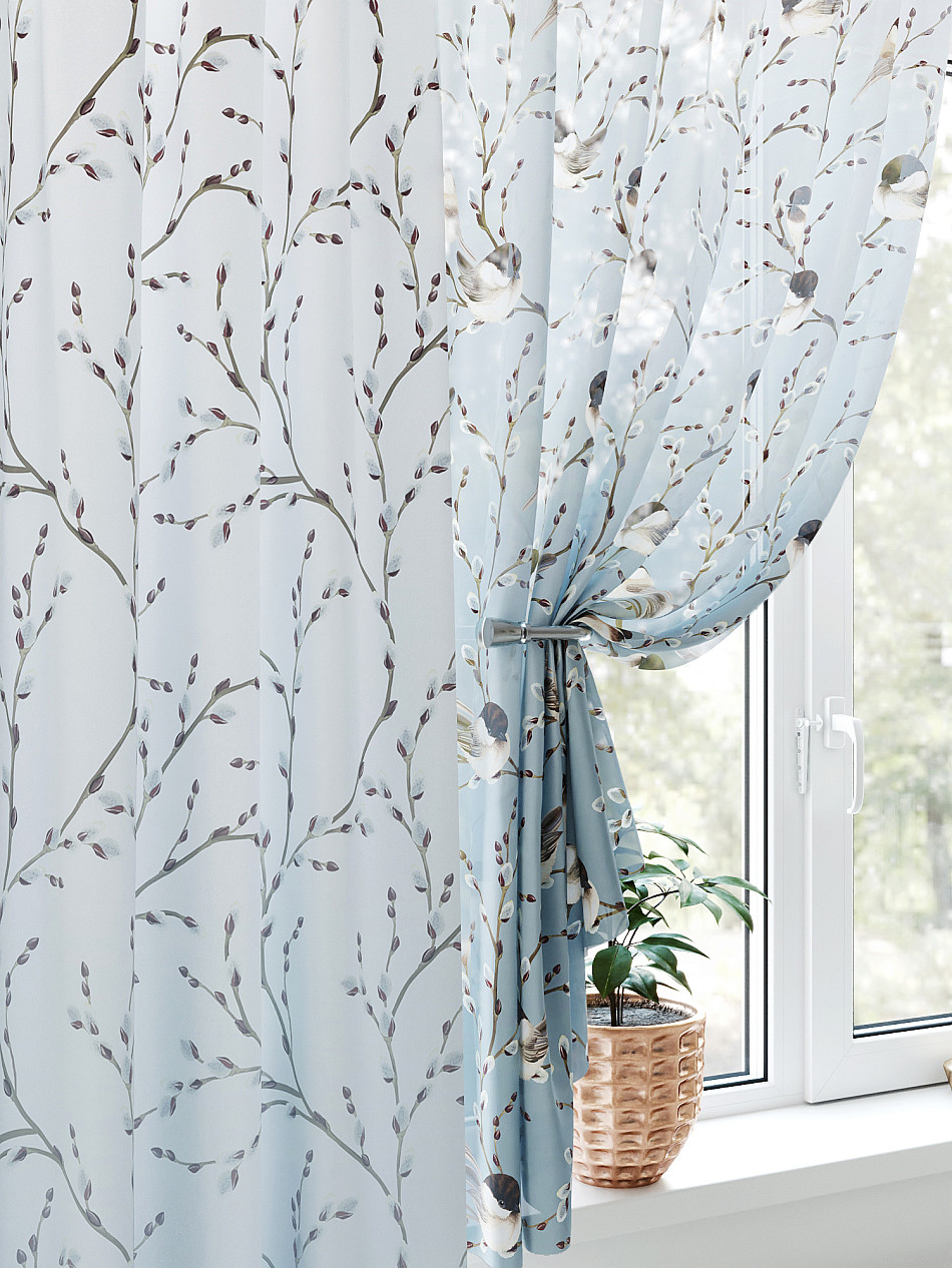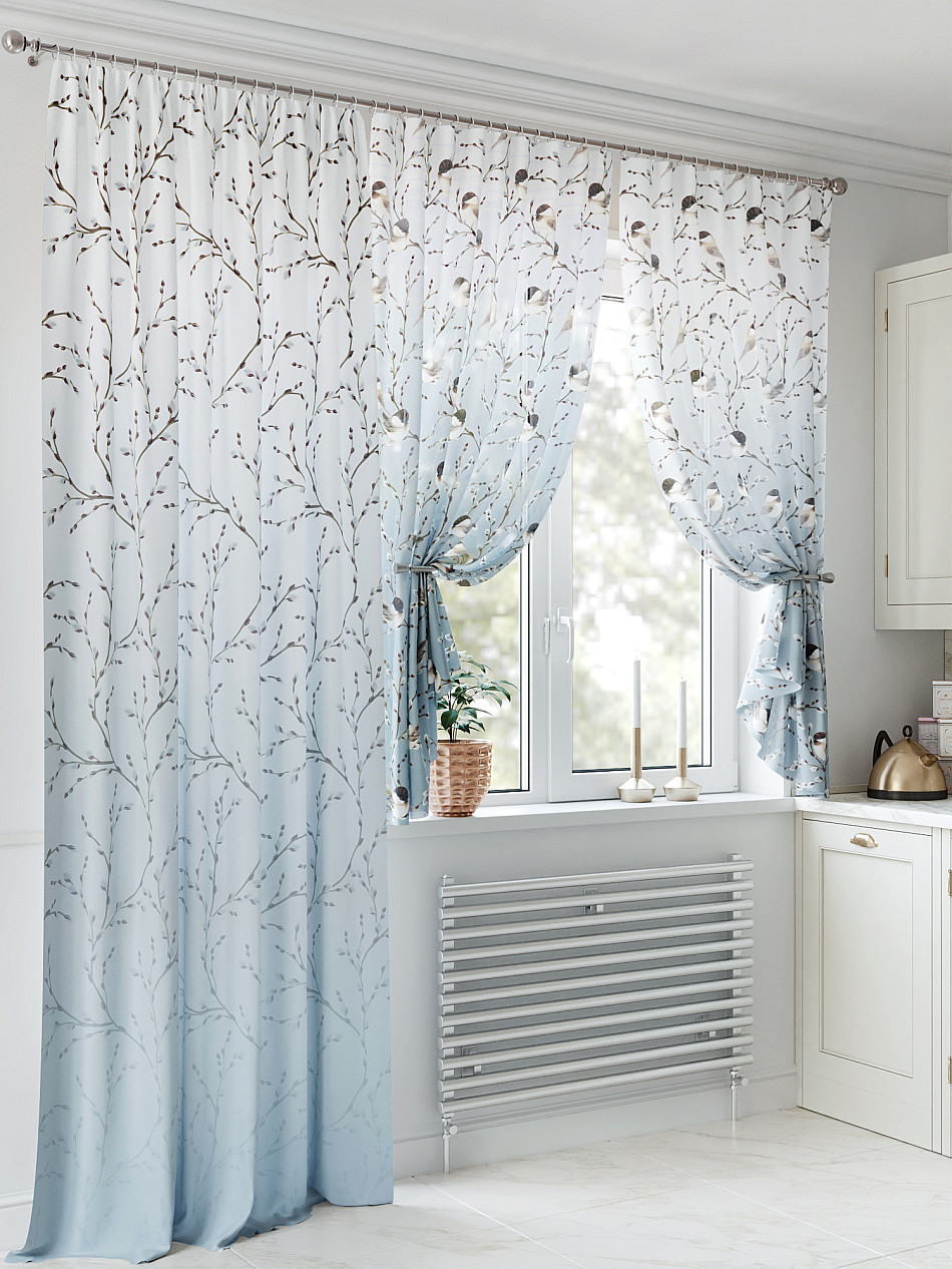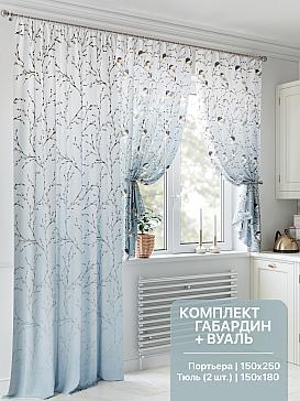 Портьера 150х250 см — 1 шт., вуаль 150х180 см — 2 шт. ( Уменьшить высоту ) Крепление: шторная лента (крючки), кулиска Подробнее
