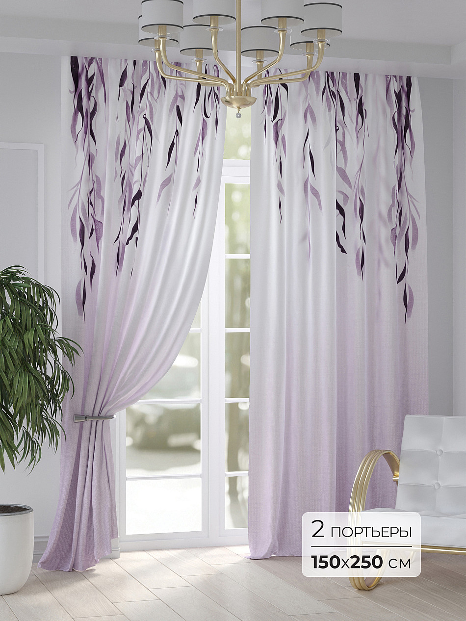 Портьера 2 шт. — 150х250 см. ( Изменить высоту) Крепление: шторная лента (крючки), кулиска Подробнее