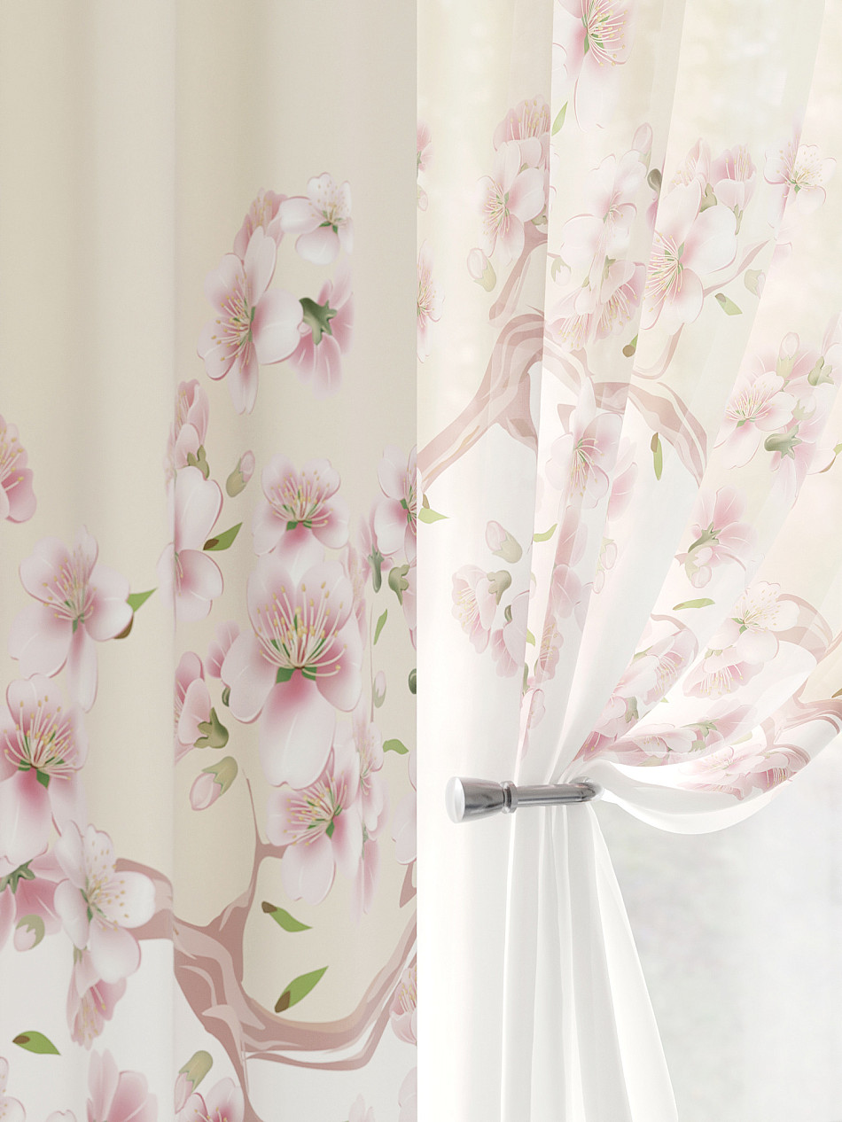 Кухонный С сакурой Фото принт ЦветочныйАксессуары для оформления штор:
