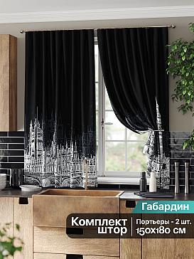 Комплект штор из легкой портьерной ткани (габардин) оформлен печатным рисунком. Печатный рисунок дает широкие возможности обновить интерьер фактически нет требуя ремонта за счет огромного выбора. Ткани с печатным рисунком безопасны и не содержат токсичных веществ. Не смотря на то что, материал легкий, он имеет высокую плотность, мало загрязнятся и не требует особого ухода даже после стирки, что важно для кухонных занавесок. Шторы не выцветают, не растягиваются, превосходно драпируются, образуя струящиеся складки. Прекрасное решение для создания красоты и уюта с помощью уникальных дизайнов.