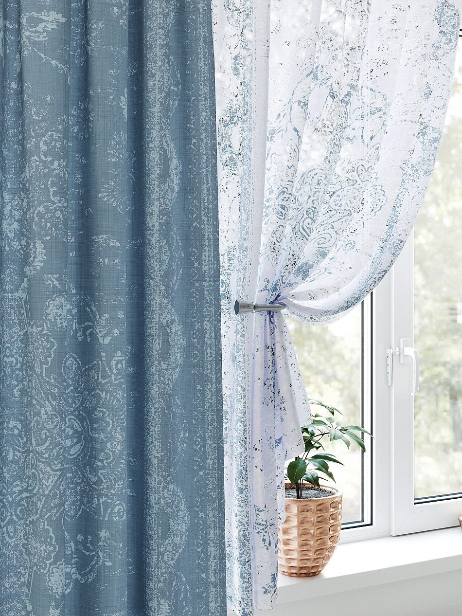 - Состав комплекта Портьера 150х250 см — 1 шт., вуаль 150х180 см — 2 шт.