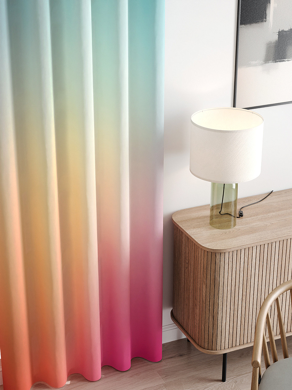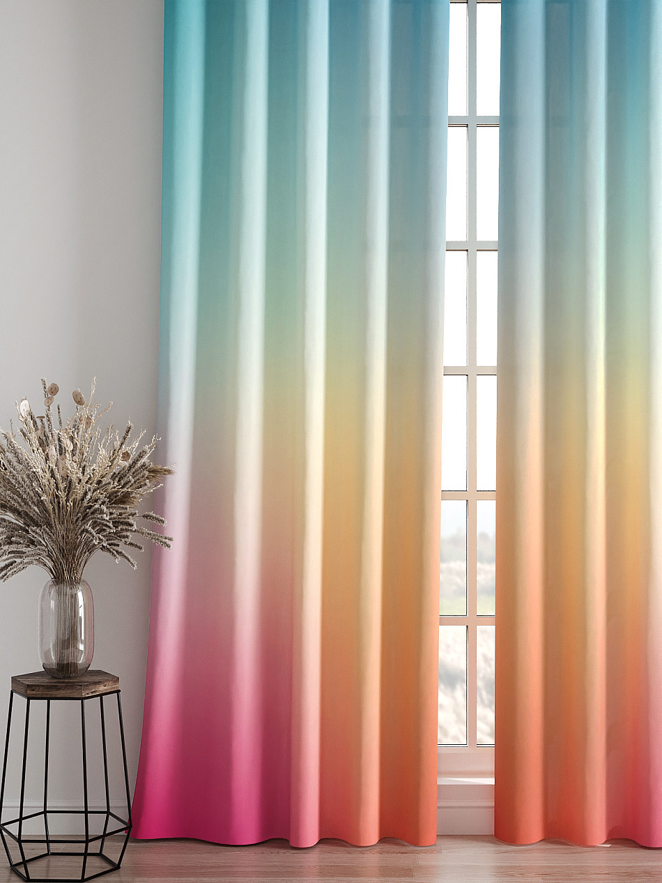 Комплект штор из легкой портьерной ткани (габардин) оформлен печатным рисунком. Печатный рисунок дает широкие возможности обновить интерьер фактически нет требуя ремонта за счет огромного выбора. Ткани с печатным рисунком безопасны и не содержат токсичных веществ. Не смотря на то что, материал легкий, он имеет высокую плотность, мало загрязнятся и не требует особого ухода даже после стирки, что важно для кухонных занавесок. Шторы не выцветают, не растягиваются, превосходно драпируются, образуя струящиеся складки. Прекрасное решение для создания красоты и уюта с помощью уникальных дизайнов.