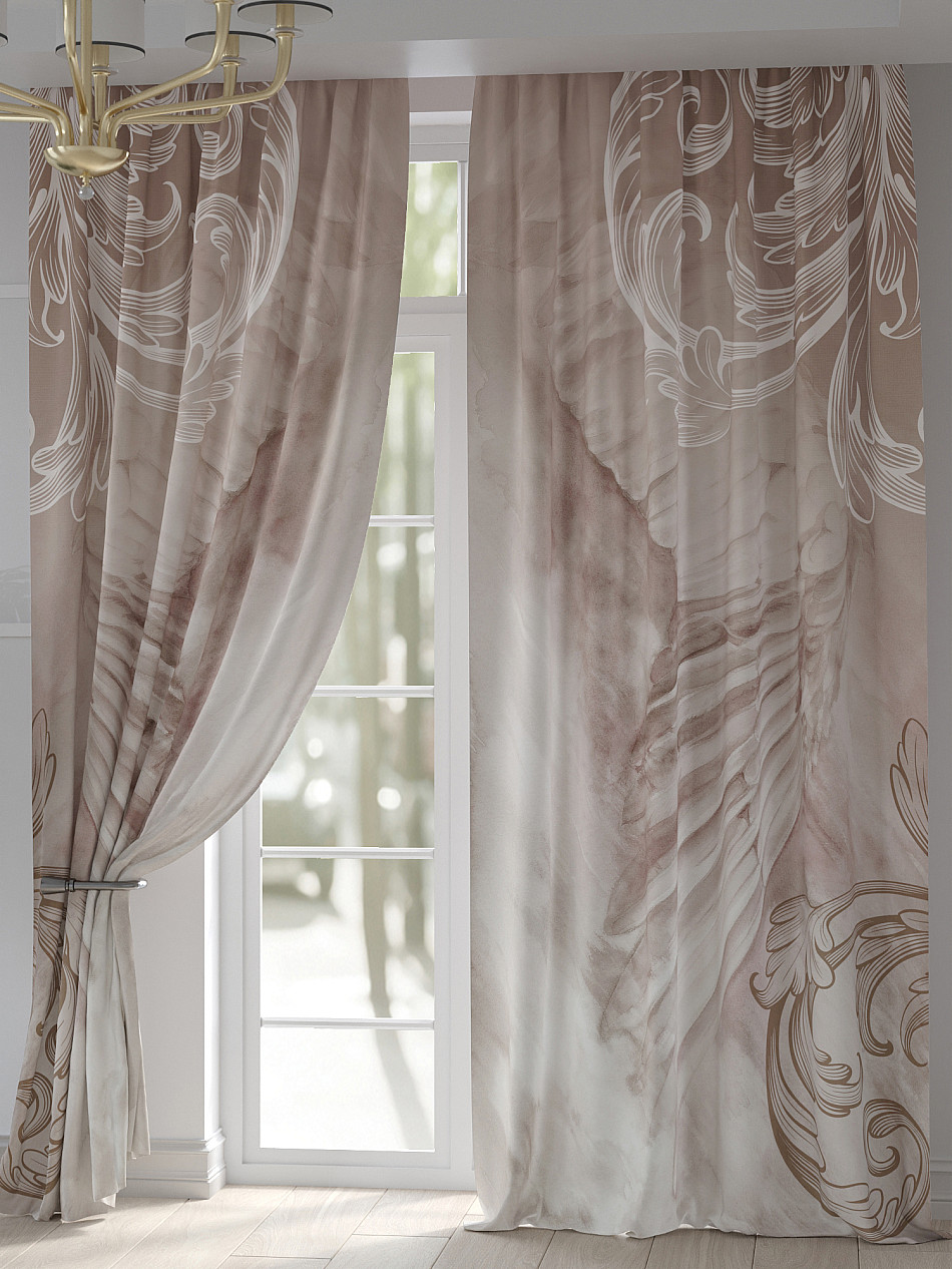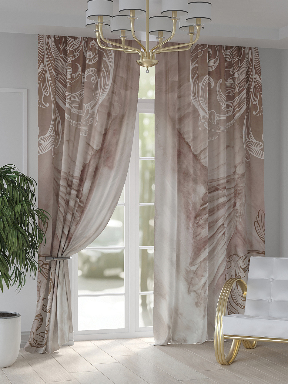 Портьера 2 шт. Подхват - доп.услуга. Комплект штор из легкой портьерной ткани (габардин) оформлен печатным рисунком. Печатный рисунок дает широкие возможности обновить интерьер фактически нет требуя ремонта за счет огромного выбора. Ткани с печатным рисунком безопасны и не содержат токсичных веществ. Не смотря на то что, материал легкий, он имеет высокую плотность, мало загрязнятся и не требует особого ухода даже после стирки, что важно для кухонных занавесок. Шторы не выцветают, не растягиваются, превосходно драпируются, образуя струящиеся складки. Прекрасное решение для создания красоты и уюта с помощью уникальных дизайнов.