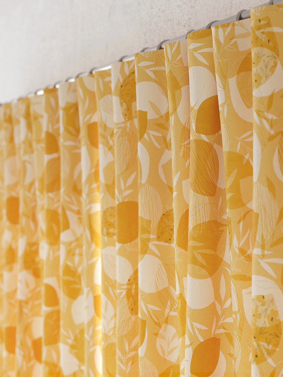 По верхнему краю портьер пришита шторная тесьма 6 см, с ее помощью затянув узелки от кордовых нитей с обеих сторон и стянув их до нужного размера можно сформировать округлые складки, далее вставить крючки в кармашки и повесить на карниз. Обязательно проверьте кордовые нити – они должны быть надежно завязаны, в противном случае во время стягивания они могут вылететь. Шторная тесьма имеет два ряда кармашков, с их помощью можно регулировать не только длину, но и ширину. Такое крепление подходит для всех типов карнизов.