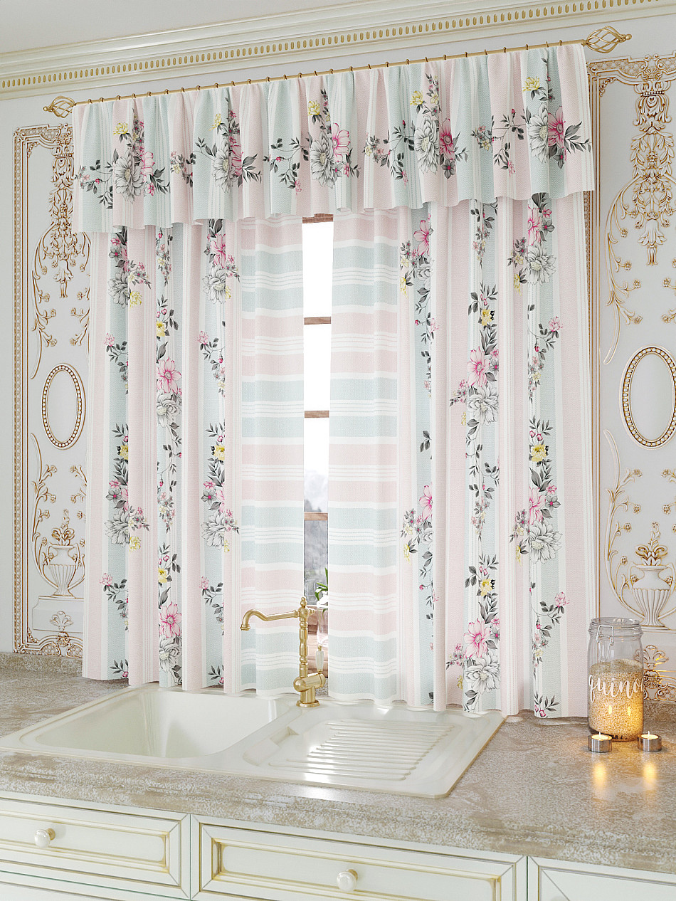 Ламбрекен: легкая основа (Габардин). Ширина — 300 см, высота — 40 см, крепление — шторная лента (крючки).