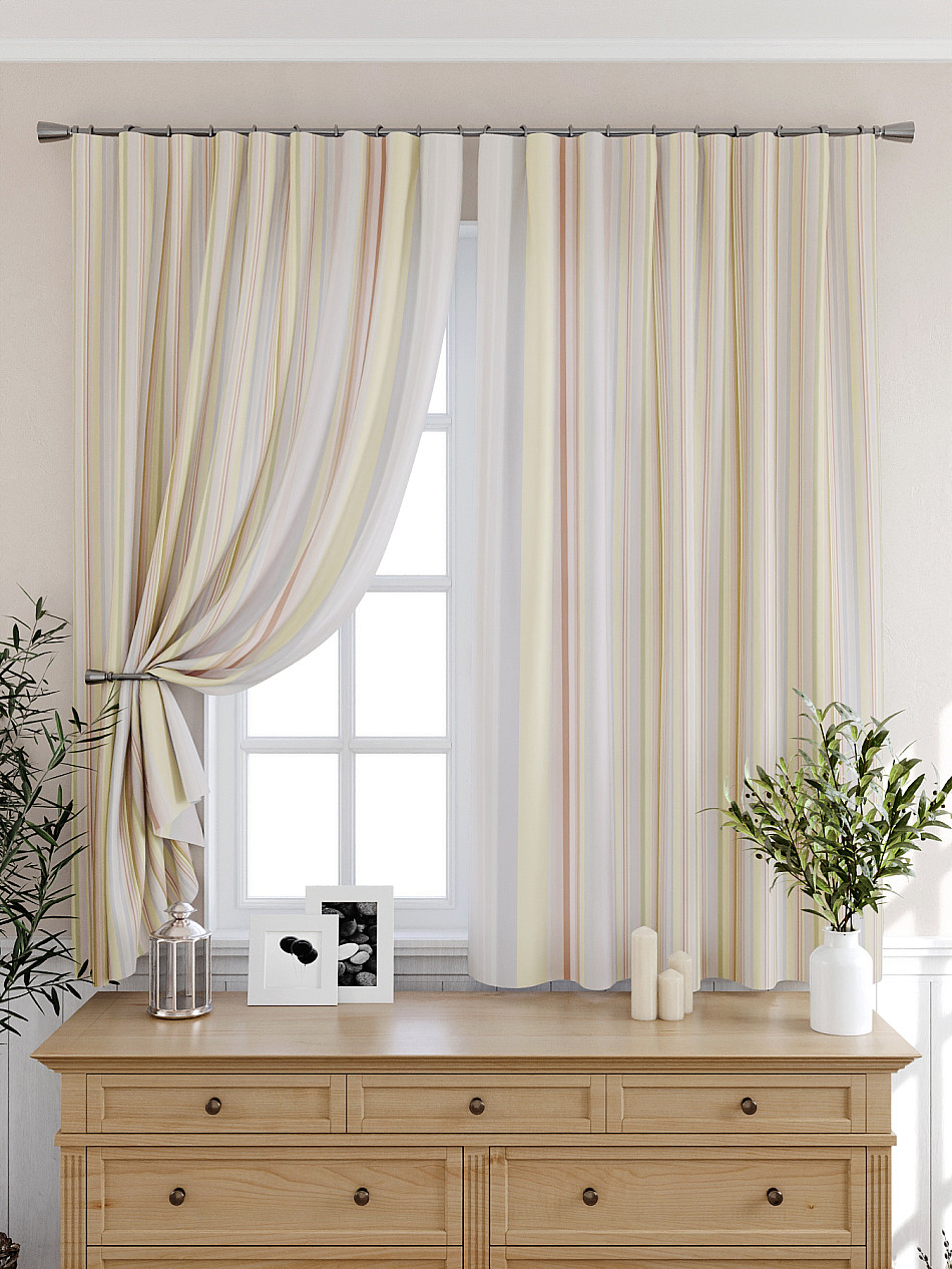 Портьеры 2 шт: Комплект штор из легкой портьерной ткани (габардин) оформлен печатным рисунком. Печатный рисунок дает широкие возможности обновить интерьер фактически нет требуя ремонта за счет огромного выбора. Ткани с печатным рисунком безопасны и не содержат токсичных веществ. Не смотря на то что, материал легкий, он имеет высокую плотность, мало загрязнятся и не требует особого ухода даже после стирки, что важно для кухонных занавесок. Шторы не выцветают, не растягиваются, превосходно драпируются, образуя струящиеся складки. Прекрасное решение для создания красоты и уюта с помощью уникальных дизайнов.