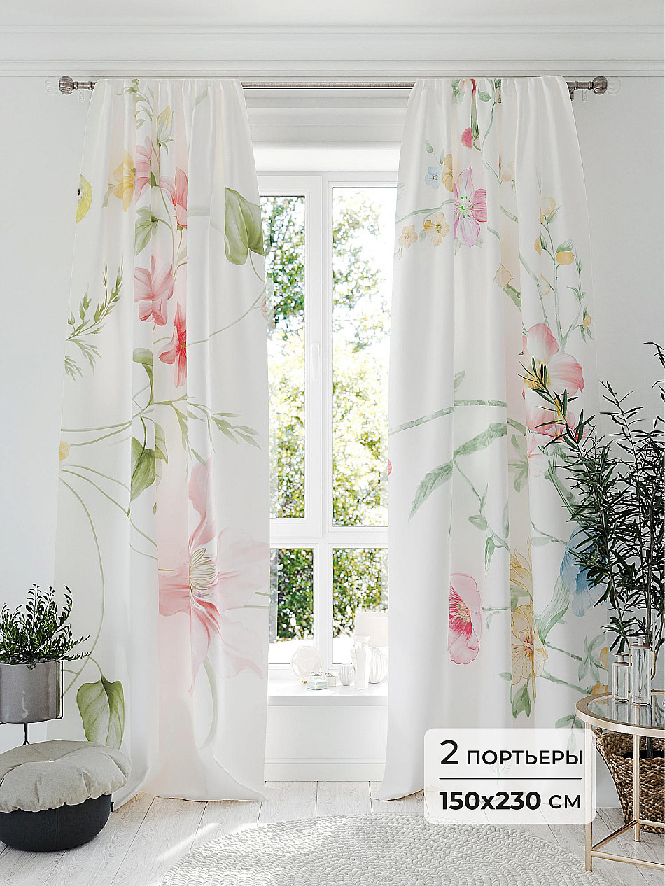 Портьера 2 шт. Подхват - доп.услуга. Комплект штор из легкой портьерной ткани (габардин) оформлен печатным рисунком. Печатный рисунок дает широкие возможности обновить интерьер фактически нет требуя ремонта за счет огромного выбора. Ткани с печатным рисунком безопасны и не содержат токсичных веществ. Не смотря на то что, материал легкий, он имеет высокую плотность, мало загрязнятся и не требует особого ухода даже после стирки, что важно для кухонных занавесок. Шторы не выцветают, не растягиваются, превосходно драпируются, образуя струящиеся складки. Прекрасное решение для создания красоты и уюта с помощью уникальных дизайнов.