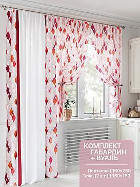 Портьера 150х250 см — 1 шт., вуаль 150х180 см — 2 шт. ( Уменьшить высоту ) Крепление: шторная лента (крючки), кулиска Подробнее