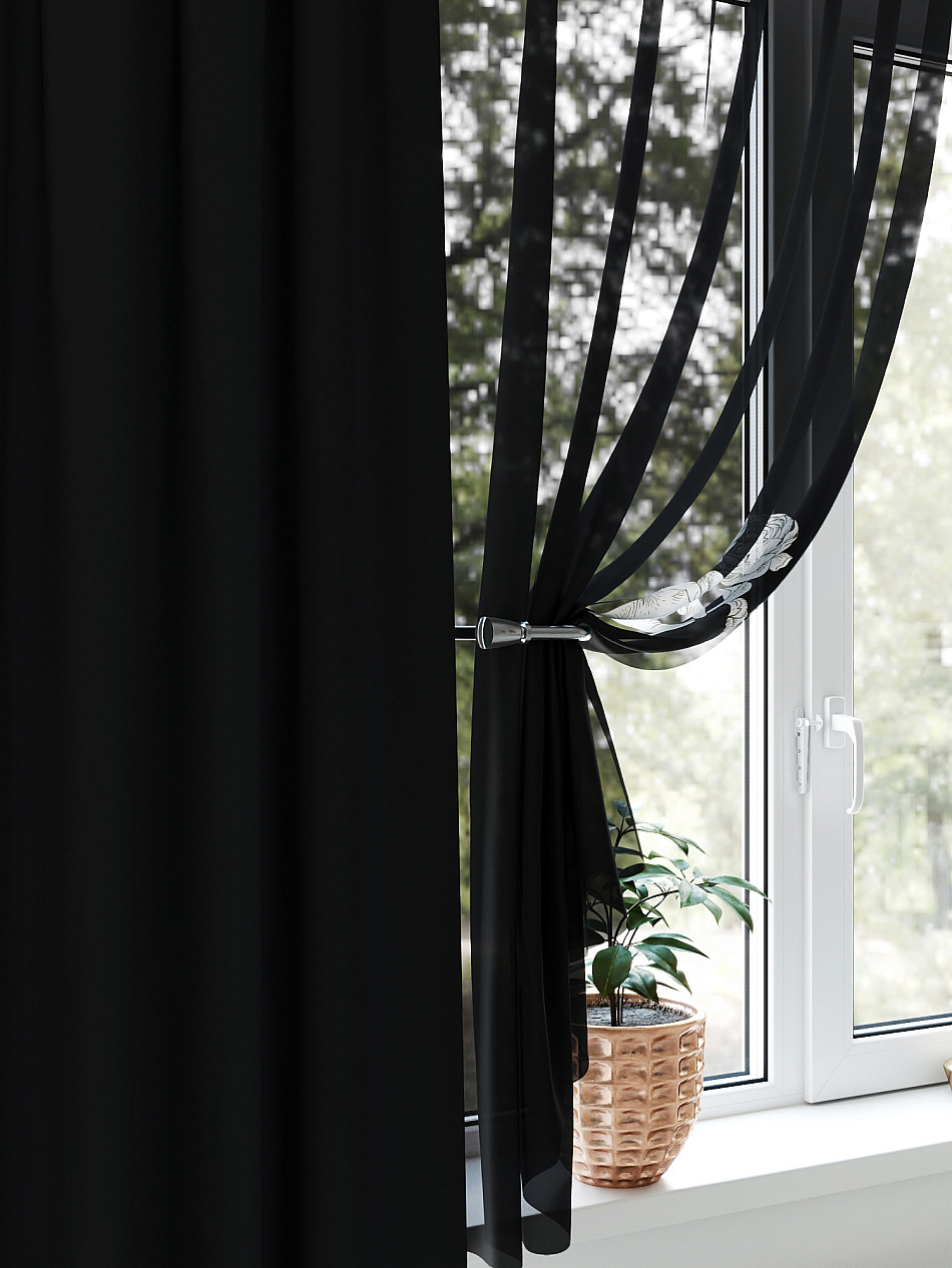 - Состав комплекта Портьера 150х250 см — 1 шт., вуаль 150х180 см — 2 шт.