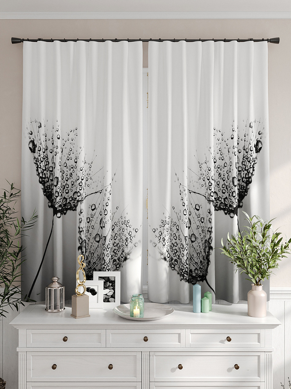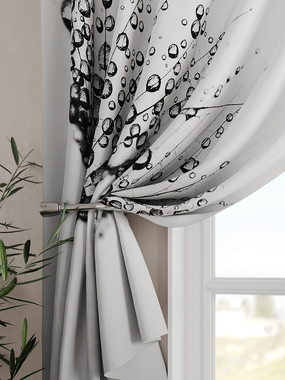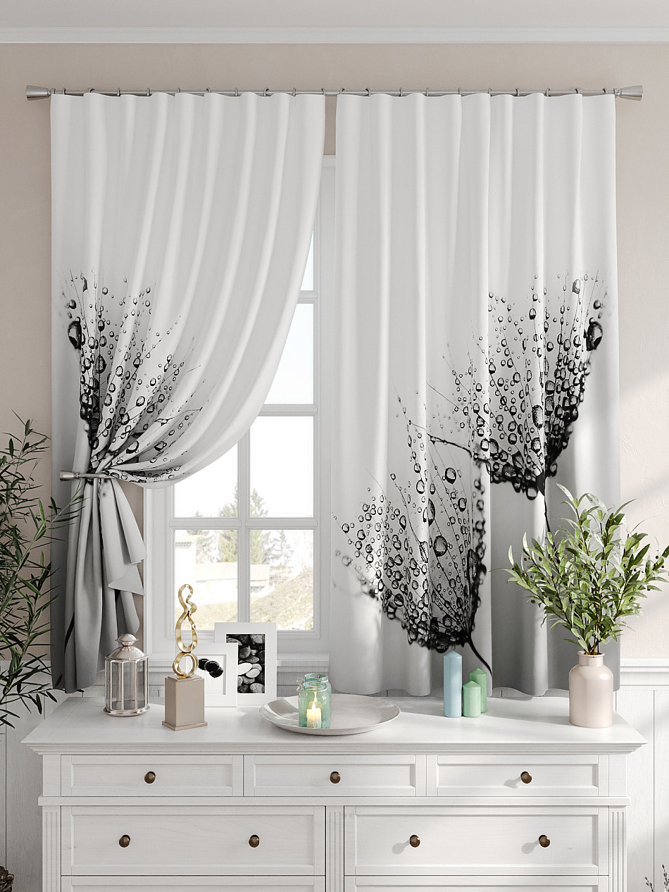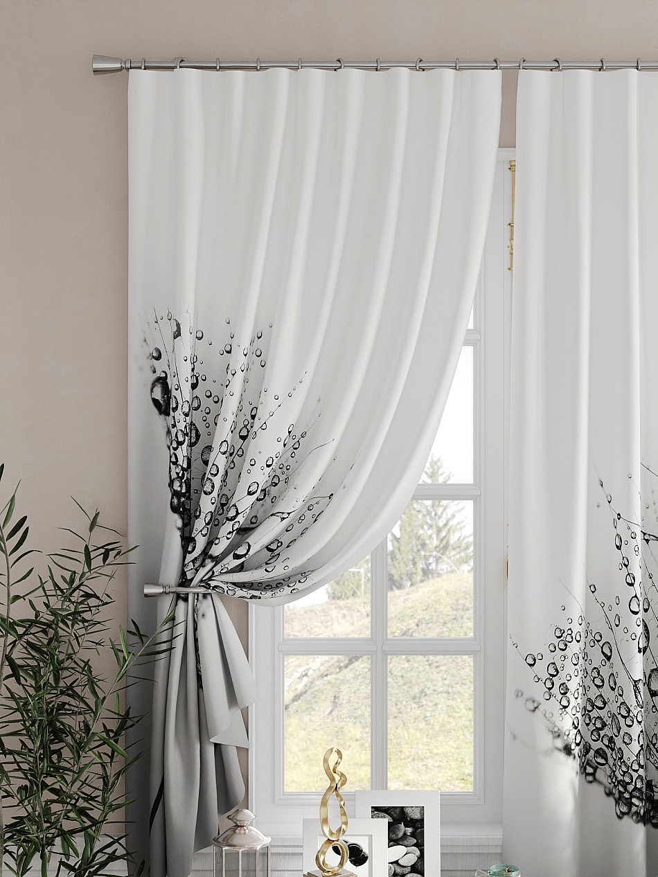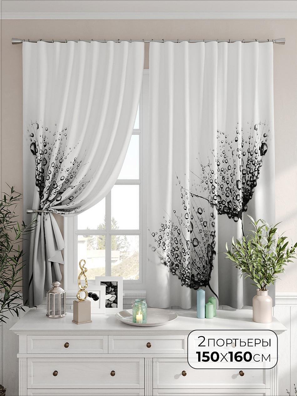 Портьеры 2 шт. Комплект штор из легкой портьерной ткани (габардин) оформлен печатным рисунком. Печатный рисунок дает широкие возможности обновить интерьер фактически не требуя ремонта за счет огромного выбора. Ткани с печатным рисунком безопасны и не содержат токсичных веществ. Не смотря на то, что материал легкий, он имеет высокую плотность, мало загрязнятся и не требует особого ухода даже после стирки, что важно для кухонных занавесок. Шторы не выцветают, не растягиваются, превосходно драпируются, образуя струящиеся складки. Прекрасное решение для создания красоты и уюта с помощью уникальных дизайнов.