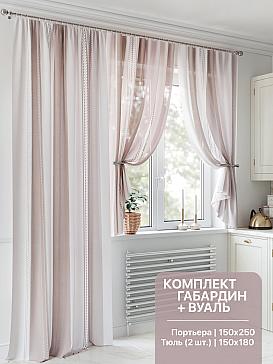 Портьера 150х250 см — 1 шт., вуаль 150х180 см — 2 шт. ( Уменьшить высоту ) Крепление: шторная лента (крючки), кулиска Подробнее