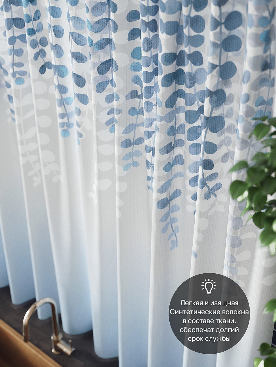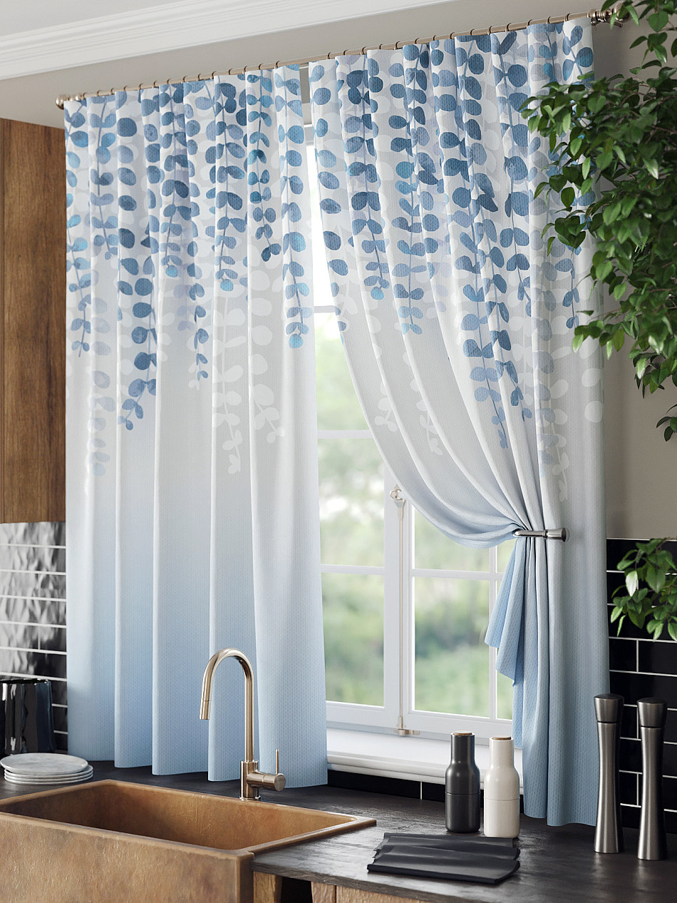 Комплект штор из легкой портьерной ткани (габардин) оформлен печатным рисунком. Печатный рисунок дает широкие возможности обновить интерьер фактически нет требуя ремонта за счет огромного выбора. Ткани с печатным рисунком безопасны и не содержат токсичных веществ. Не смотря на то что, материал легкий, он имеет высокую плотность, мало загрязнятся и не требует особого ухода даже после стирки, что важно для кухонных занавесок. Шторы не выцветают, не растягиваются, превосходно драпируются, образуя струящиеся складки. Прекрасное решение для создания красоты и уюта с помощью уникальных дизайнов.