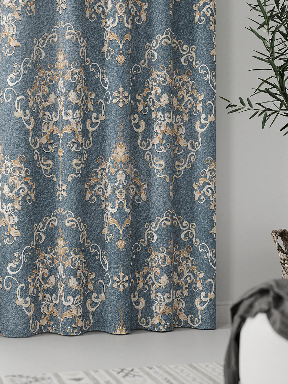 - Шторы с вензелями серые