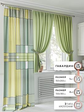 Портьеры 2 шт.: Легкая основа оформлена геометрическим рисунком. Ширина — 150 см., высота — 180 см., крепление — шторная лента (крючки).