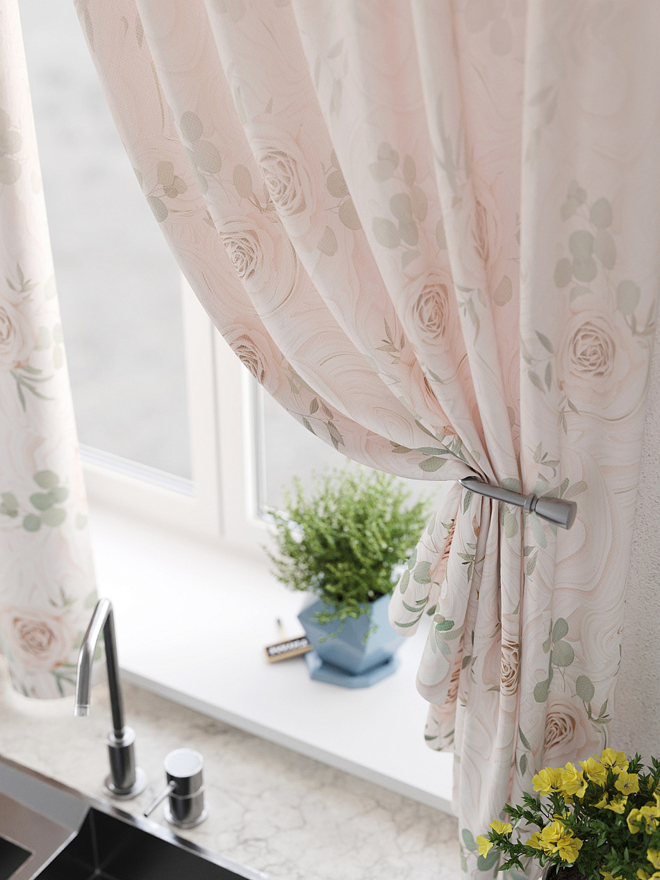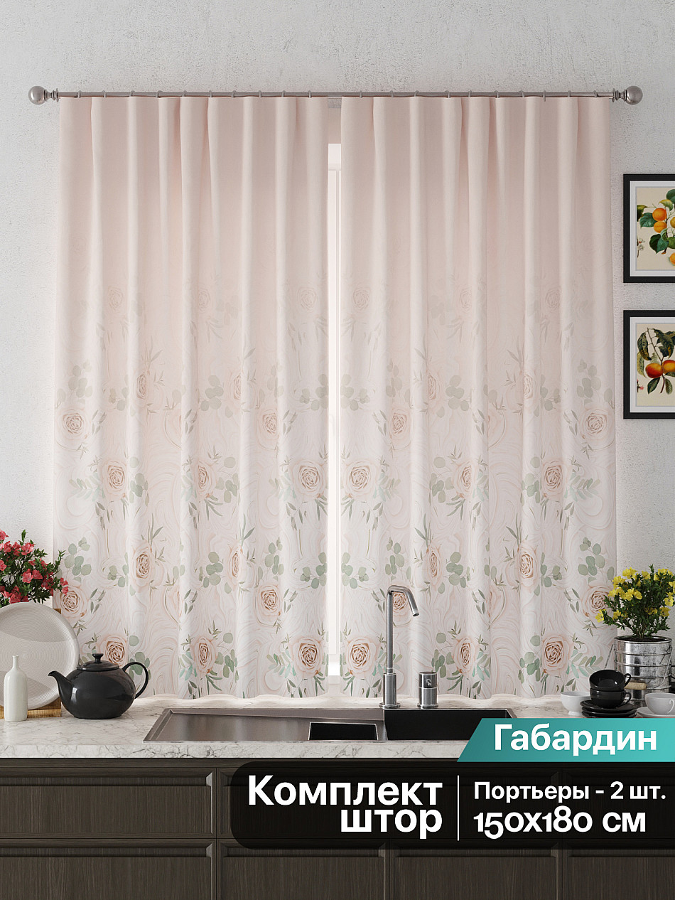 Портьеры 2 шт: Комплект штор из легкой портьерной ткани (габардин) оформлен печатным рисунком. Печатный рисунок дает широкие возможности обновить интерьер фактически нет требуя ремонта за счет огромного выбора. Ткани с печатным рисунком безопасны и не содержат токсичных веществ. Не смотря на то что, материал легкий, он имеет высокую плотность, мало загрязнятся и не требует особого ухода даже после стирки, что важно для кухонных занавесок. Шторы не выцветают, не растягиваются, превосходно драпируются, образуя струящиеся складки. Прекрасное решение для создания красоты и уюта с помощью уникальных дизайнов.