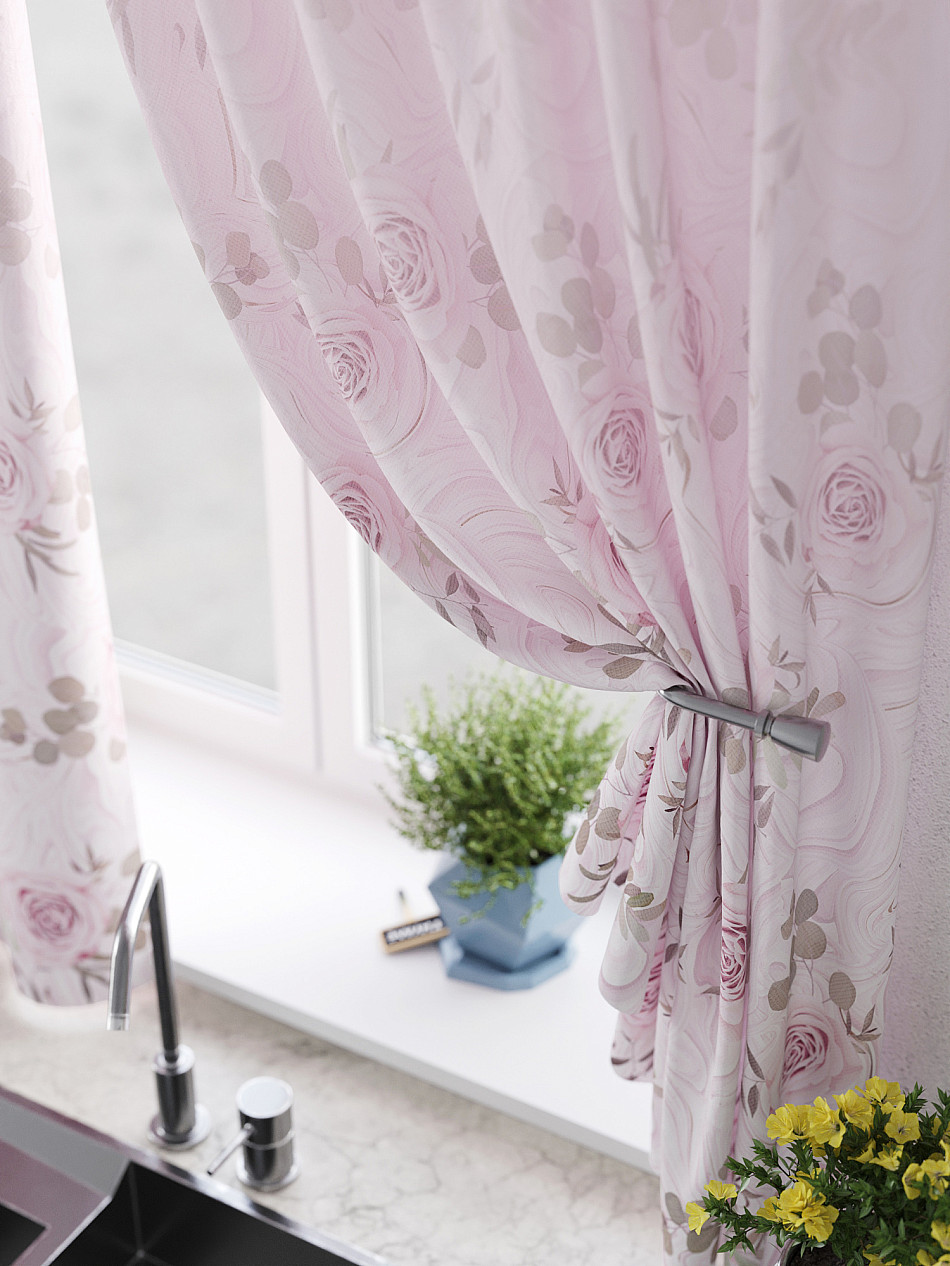 Портьеры 2 шт: Комплект штор из легкой портьерной ткани (габардин) оформлен печатным рисунком. Печатный рисунок дает широкие возможности обновить интерьер фактически нет требуя ремонта за счет огромного выбора. Ткани с печатным рисунком безопасны и не содержат токсичных веществ. Не смотря на то что, материал легкий, он имеет высокую плотность, мало загрязнятся и не требует особого ухода даже после стирки, что важно для кухонных занавесок. Шторы не выцветают, не растягиваются, превосходно драпируются, образуя струящиеся складки. Прекрасное решение для создания красоты и уюта с помощью уникальных дизайнов.