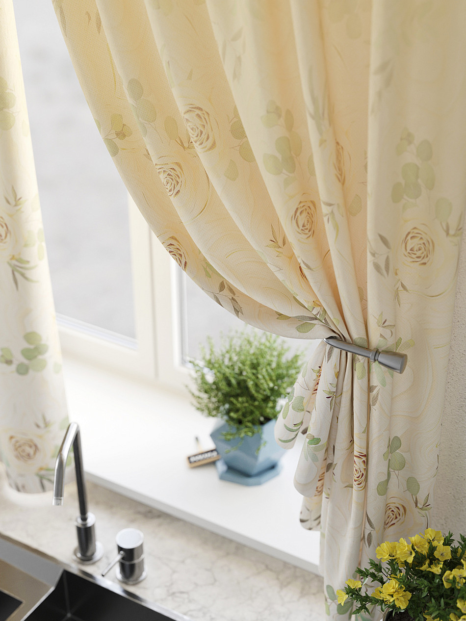 Портьеры 2 шт: Комплект штор из легкой портьерной ткани (габардин) оформлен печатным рисунком. Печатный рисунок дает широкие возможности обновить интерьер фактически нет требуя ремонта за счет огромного выбора. Ткани с печатным рисунком безопасны и не содержат токсичных веществ. Не смотря на то что, материал легкий, он имеет высокую плотность, мало загрязнятся и не требует особого ухода даже после стирки, что важно для кухонных занавесок. Шторы не выцветают, не растягиваются, превосходно драпируются, образуя струящиеся складки. Прекрасное решение для создания красоты и уюта с помощью уникальных дизайнов.