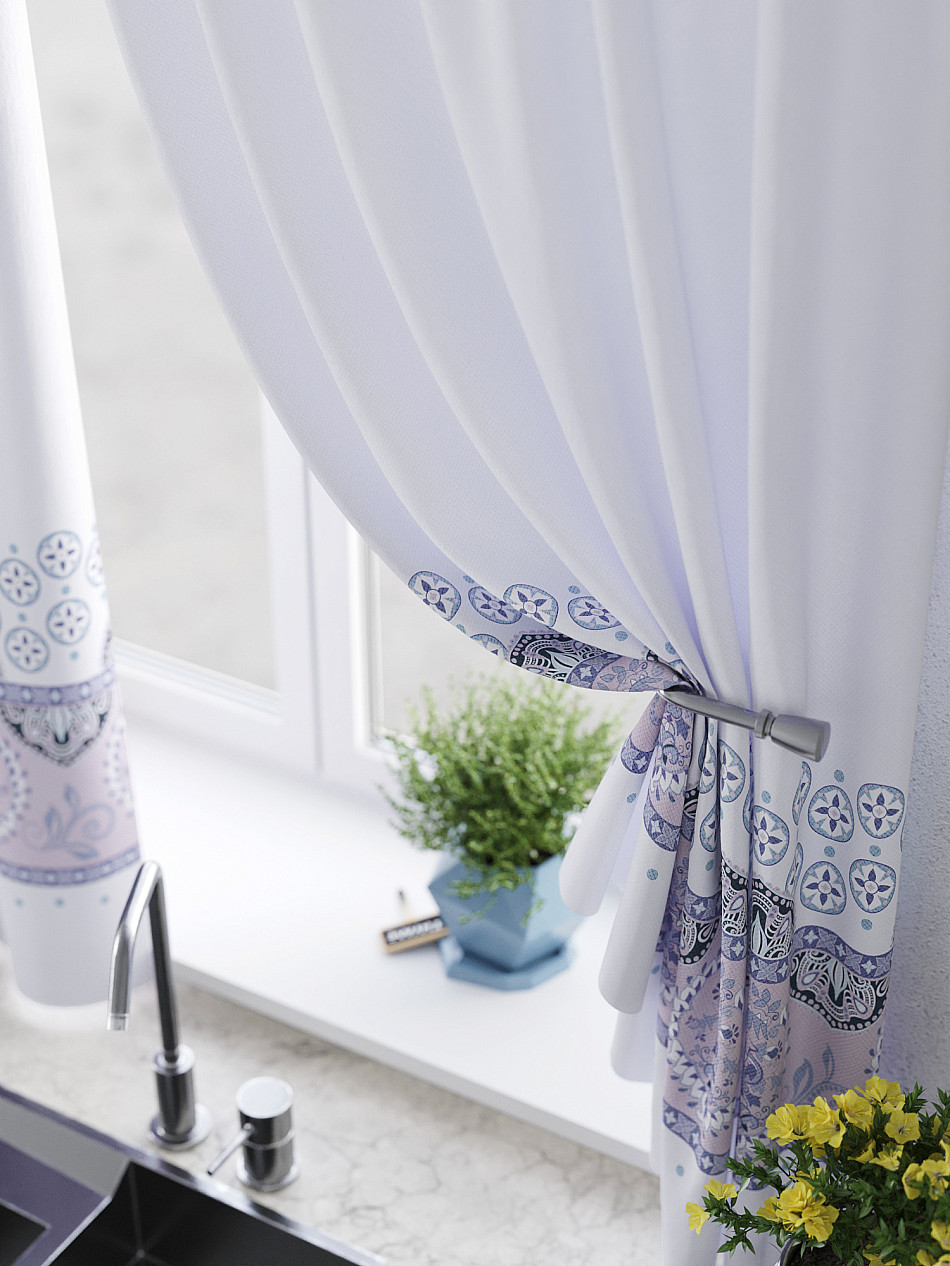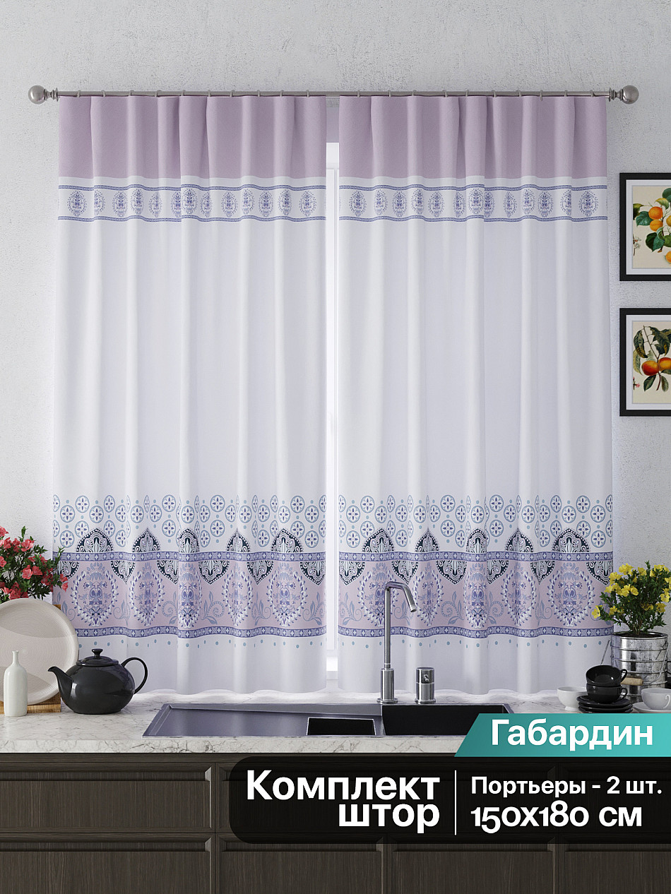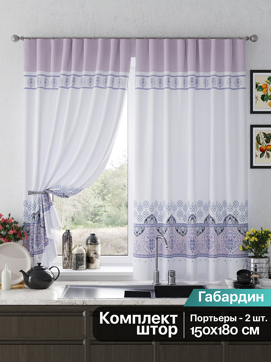 Портьеры 2 шт: Комплект штор из легкой портьерной ткани (габардин) оформлен печатным рисунком. Печатный рисунок дает широкие возможности обновить интерьер фактически нет требуя ремонта за счет огромного выбора. Ткани с печатным рисунком безопасны и не содержат токсичных веществ. Не смотря на то что, материал легкий, он имеет высокую плотность, мало загрязнятся и не требует особого ухода даже после стирки, что важно для кухонных занавесок. Шторы не выцветают, не растягиваются, превосходно драпируются, образуя струящиеся складки. Прекрасное решение для создания красоты и уюта с помощью уникальных дизайнов.