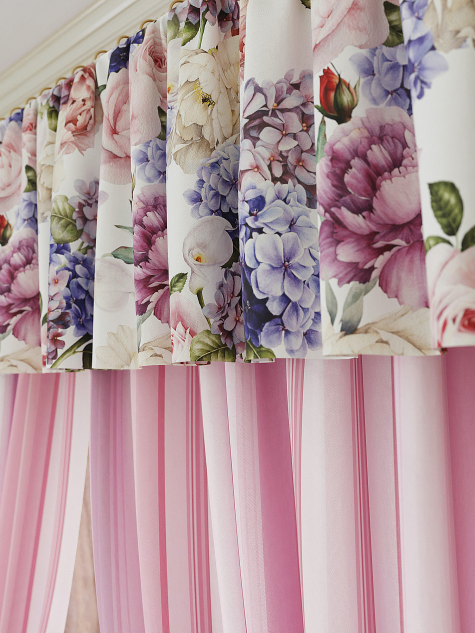 Ламбрекен: легкая основа (Габардин). Ширина — 300 см, высота — 40 см, крепление — шторная лента (крючки).