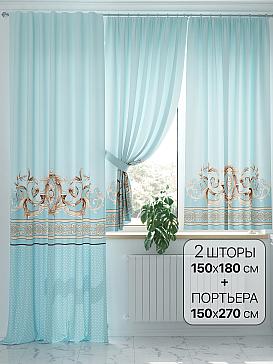 Портьера 150х270 см — 1 шт., портьера 150х180 см — 2 шт. ( Уменьшить высоту ) Крепление: шторная лента (крючки), кулиска Подробнее