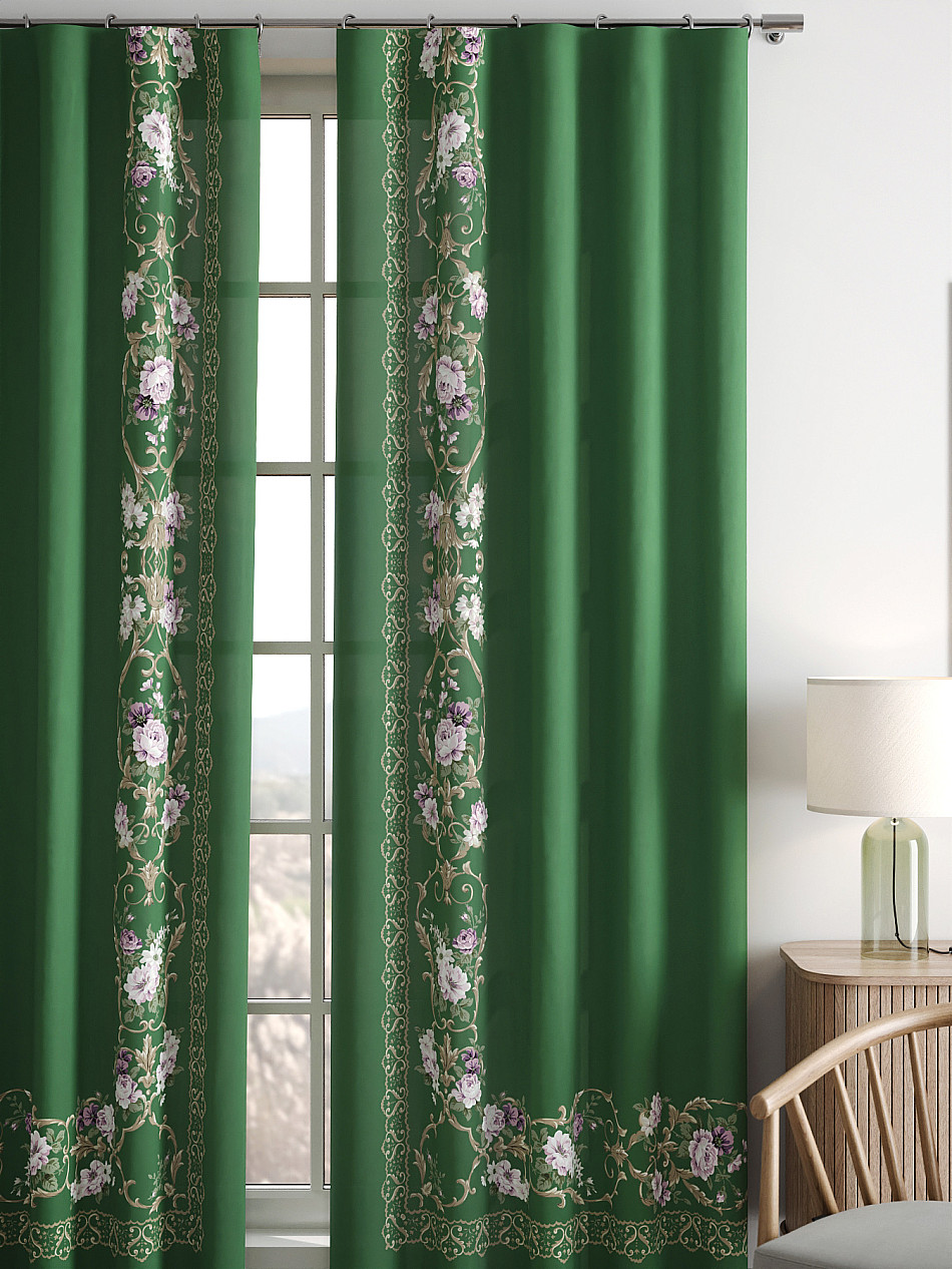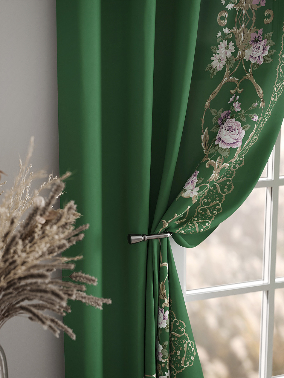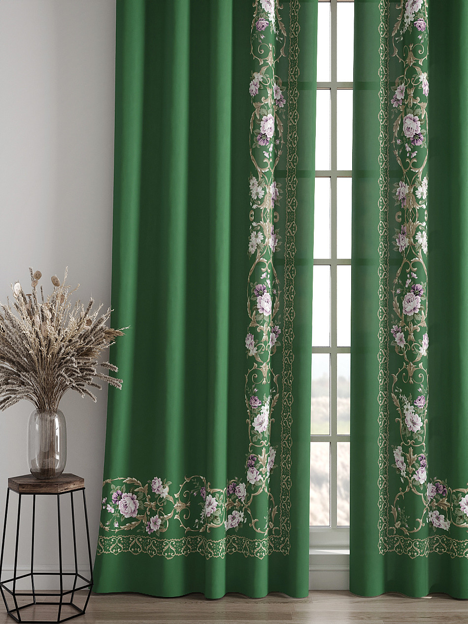 Комплект штор из легкой портьерной ткани (габардин) оформлен печатным рисунком. Печатный рисунок дает широкие возможности обновить интерьер фактически нет требуя ремонта за счет огромного выбора. Ткани с печатным рисунком безопасны и не содержат токсичных веществ. Не смотря на то что, материал легкий, он имеет высокую плотность, мало загрязнятся и не требует особого ухода даже после стирки, что важно для кухонных занавесок. Шторы не выцветают, не растягиваются, превосходно драпируются, образуя струящиеся складки. Прекрасное решение для создания красоты и уюта с помощью уникальных дизайнов.