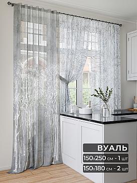 Вуаль 150х250 см — 1 шт., вуаль 150х180 см — 2 шт. ( Уменьшить высоту ) Крепление: шторная лента (крючки), кулиска Подробнее