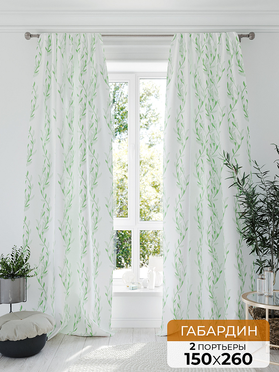 Портьера 2 шт. Подхват - доп.услуга. Комплект штор из легкой портьерной ткани (габардин) оформлен печатным рисунком. Печатный рисунок дает широкие возможности обновить интерьер фактически нет требуя ремонта за счет огромного выбора. Ткани с печатным рисунком безопасны и не содержат токсичных веществ. Не смотря на то что, материал легкий, он имеет высокую плотность, мало загрязнятся и не требует особого ухода даже после стирки, что важно для кухонных занавесок. Шторы не выцветают, не растягиваются, превосходно драпируются, образуя струящиеся складки. Прекрасное решение для создания красоты и уюта с помощью уникальных дизайнов.
