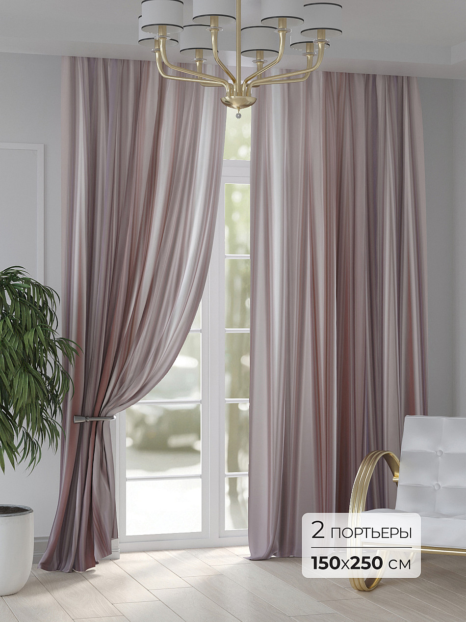 Портьера 2 шт. — 150х250 см. ( Изменить высоту) Крепление: шторная лента (крючки), кулиска Подробнее