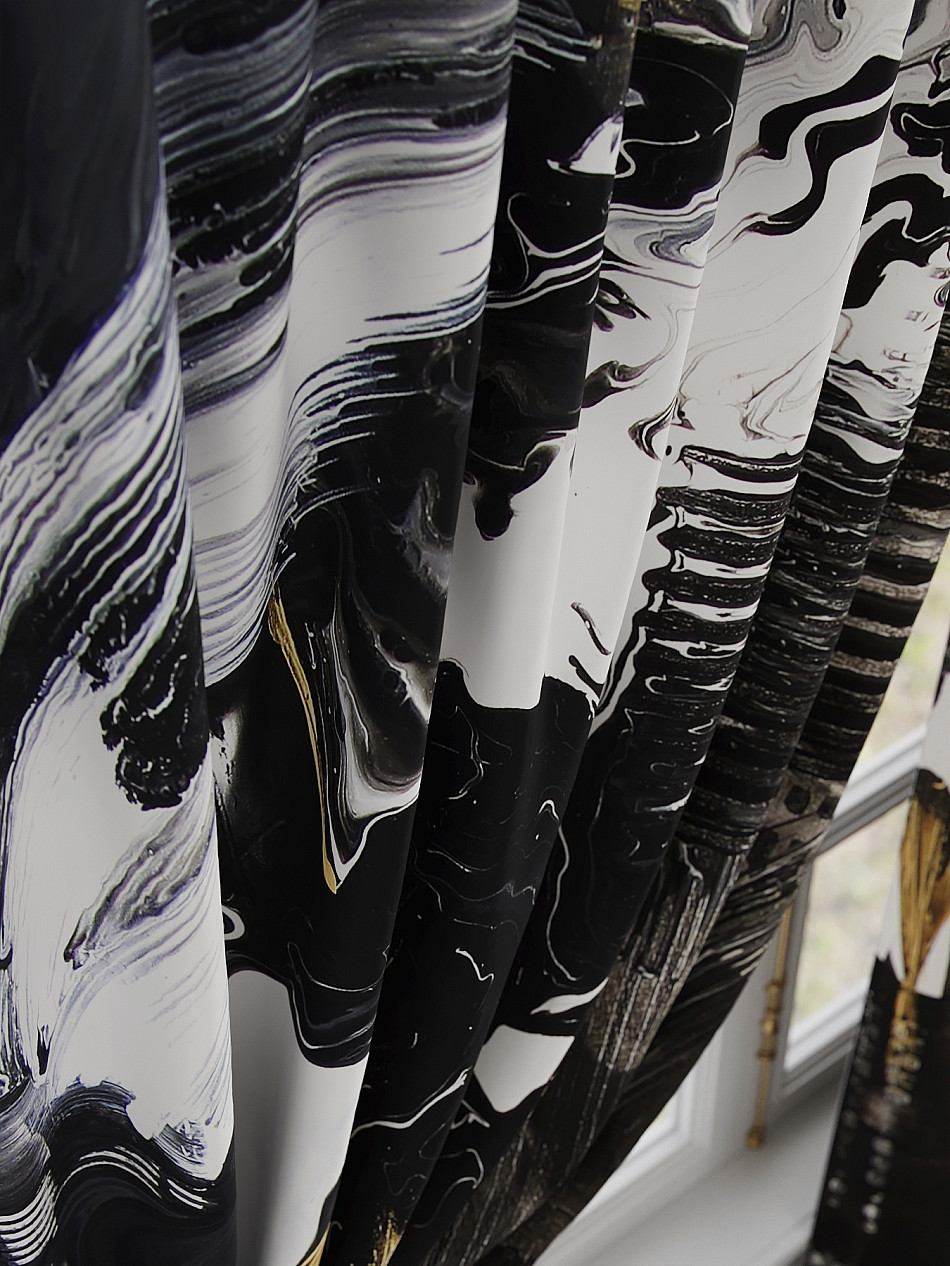 По верхнему краю портьер пришита шторная тесьма 6 см, с ее помощью затянув узелки от кордовых нитей с обеих сторон и стянув их до нужного размера можно сформировать округлые складки, далее вставить крючки в кармашки и повесить на карниз. Обязательно проверьте кордовые нити – они должны быть надежно завязаны, в противном случае во время стягивания они могут вылететь. Шторная тесьма имеет два ряда кармашков, с их помощью можно регулировать не только длину, но и ширину. Такое крепление подходит для всех типов карнизов.