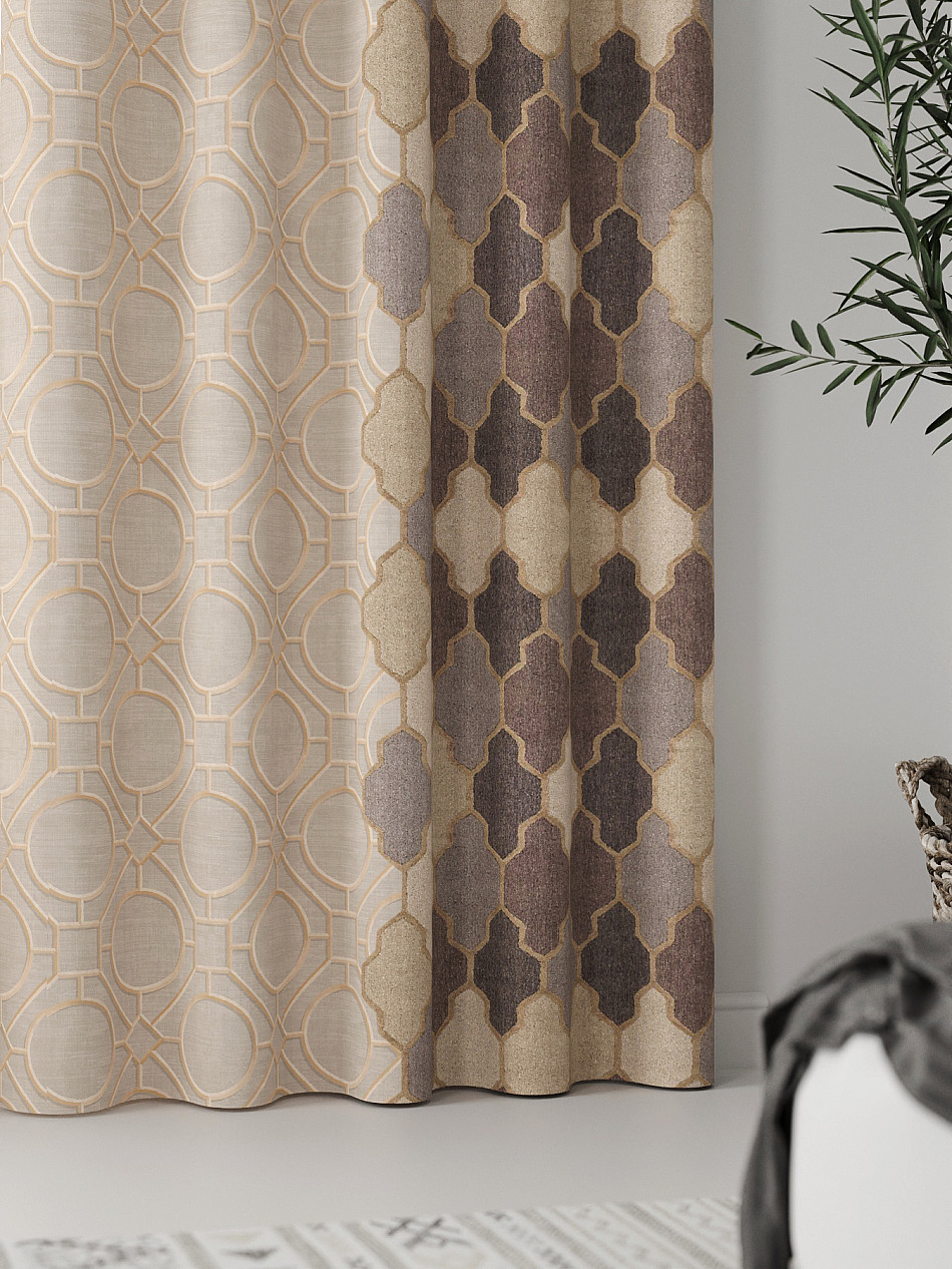 Абстракция Один цвет Современный Узоры Геометрия Классический Комбинированные Однотонные с элементами Фото принтАксессуары для оформления штор: