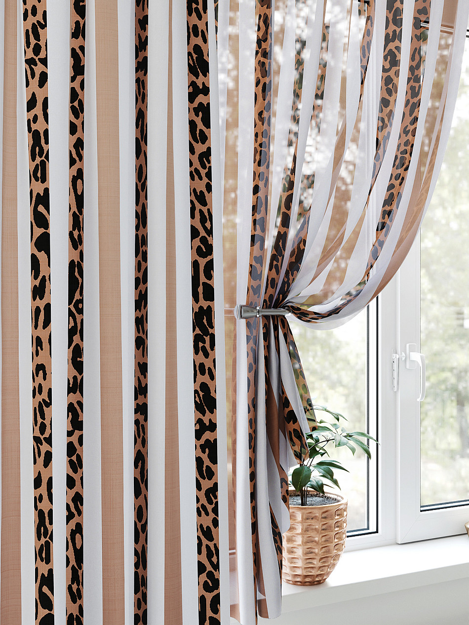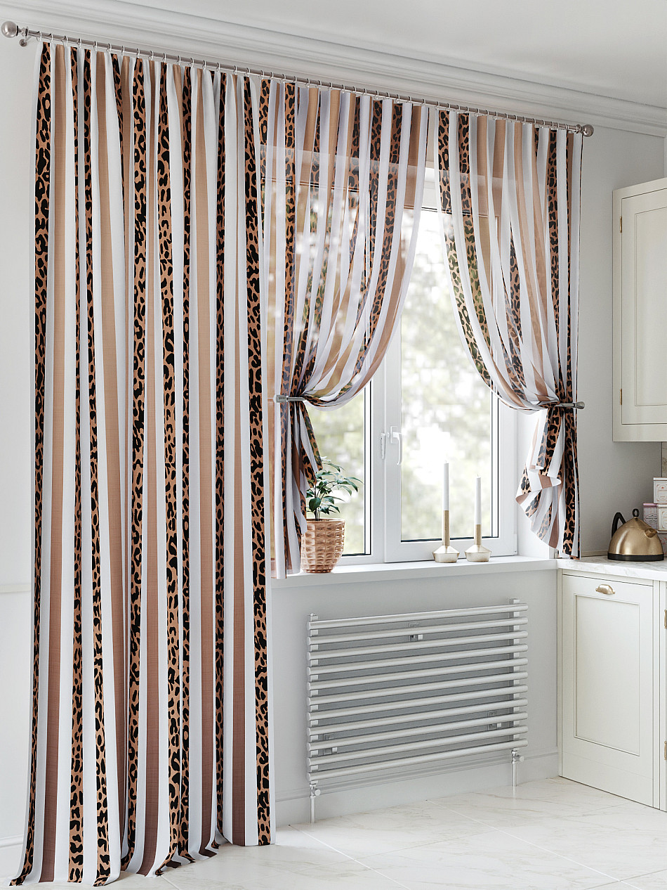 Портьера 150х250 см — 1 шт., вуаль 150х180 см — 2 шт. ( Уменьшить высоту ) Крепление: шторная лента (крючки), кулиска Подробнее